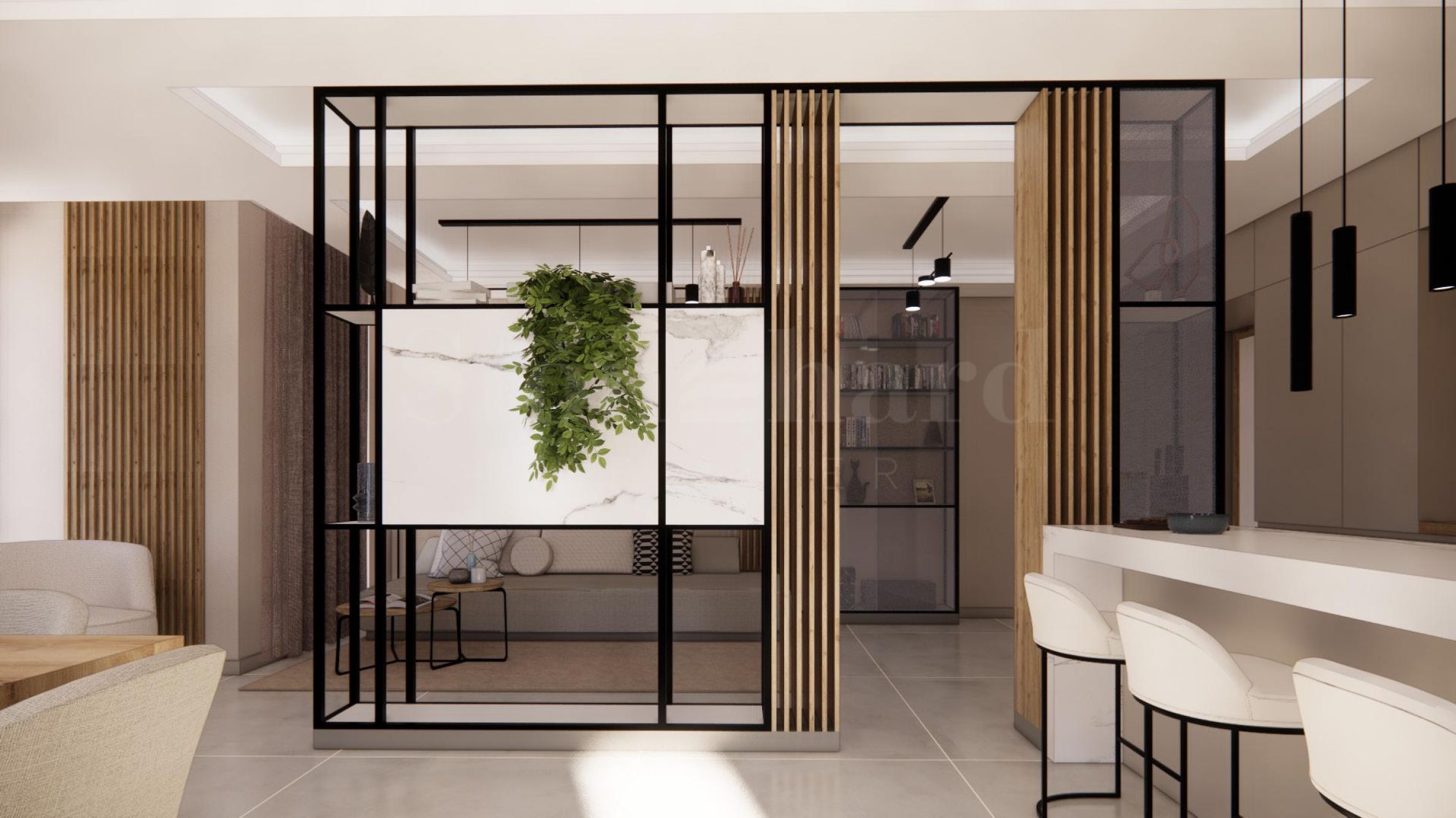 a spacious living room with a terrace from which to enjoy Vitosha Mountain and the beautifully designed green spaces of the complex. The price of the property includes an interior design project by a famous design house. A modern water-floor heating system has been installed at an additional cost of 9,000 leva, and a NIBE heat pump will be installed, an extremely high class, which guarantees maximum comfort and very low costs. The heat pump is at an additional cost of 25,000 leva.