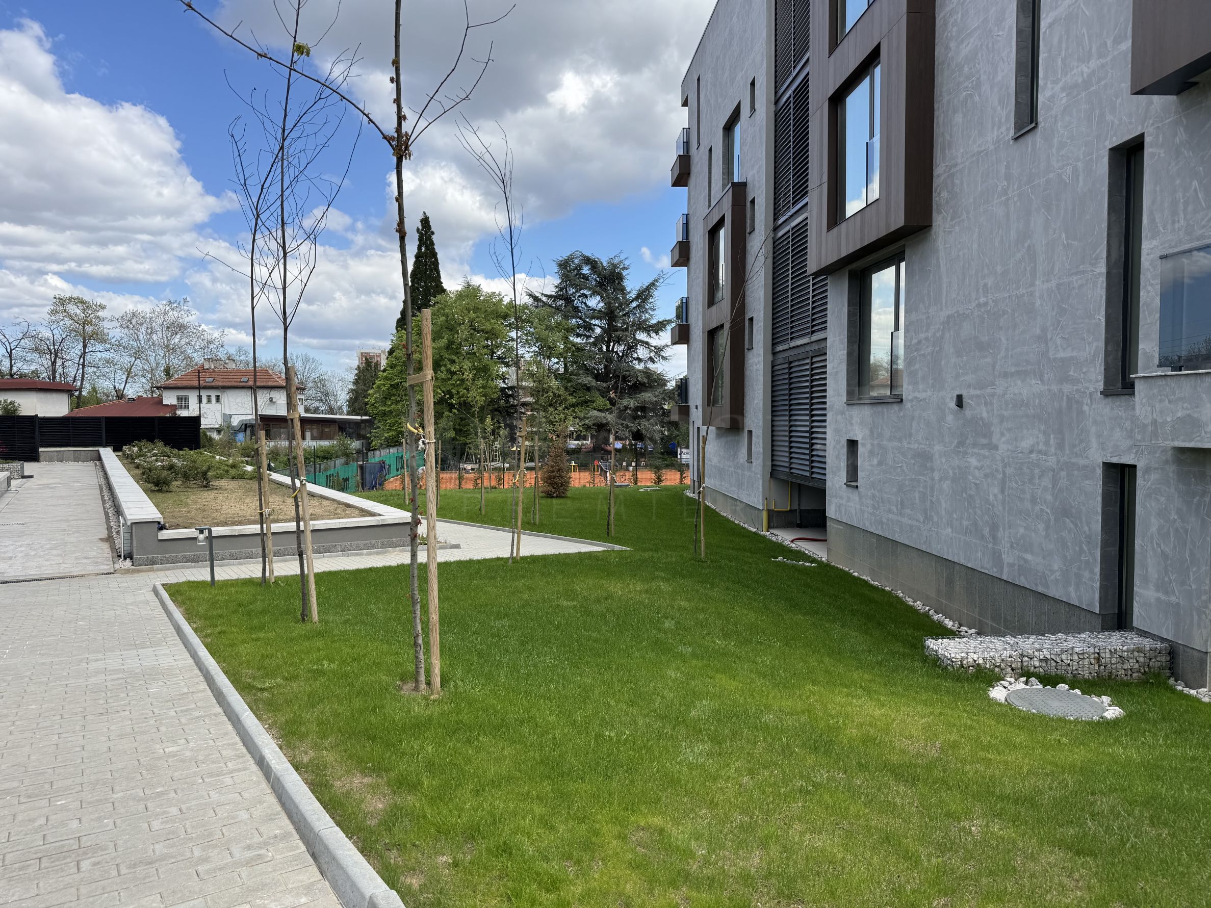 The biggest advantage of this complex, however, compared to other new construction complexes, is the already existing comprehensive, perennial landscaping of the Diplomatic Club. The complex houses the largest sequoia in Sofia and a century-old walnut tree, which, together with the other tall trees, provide thick shade in the yard and soundproof the space.
