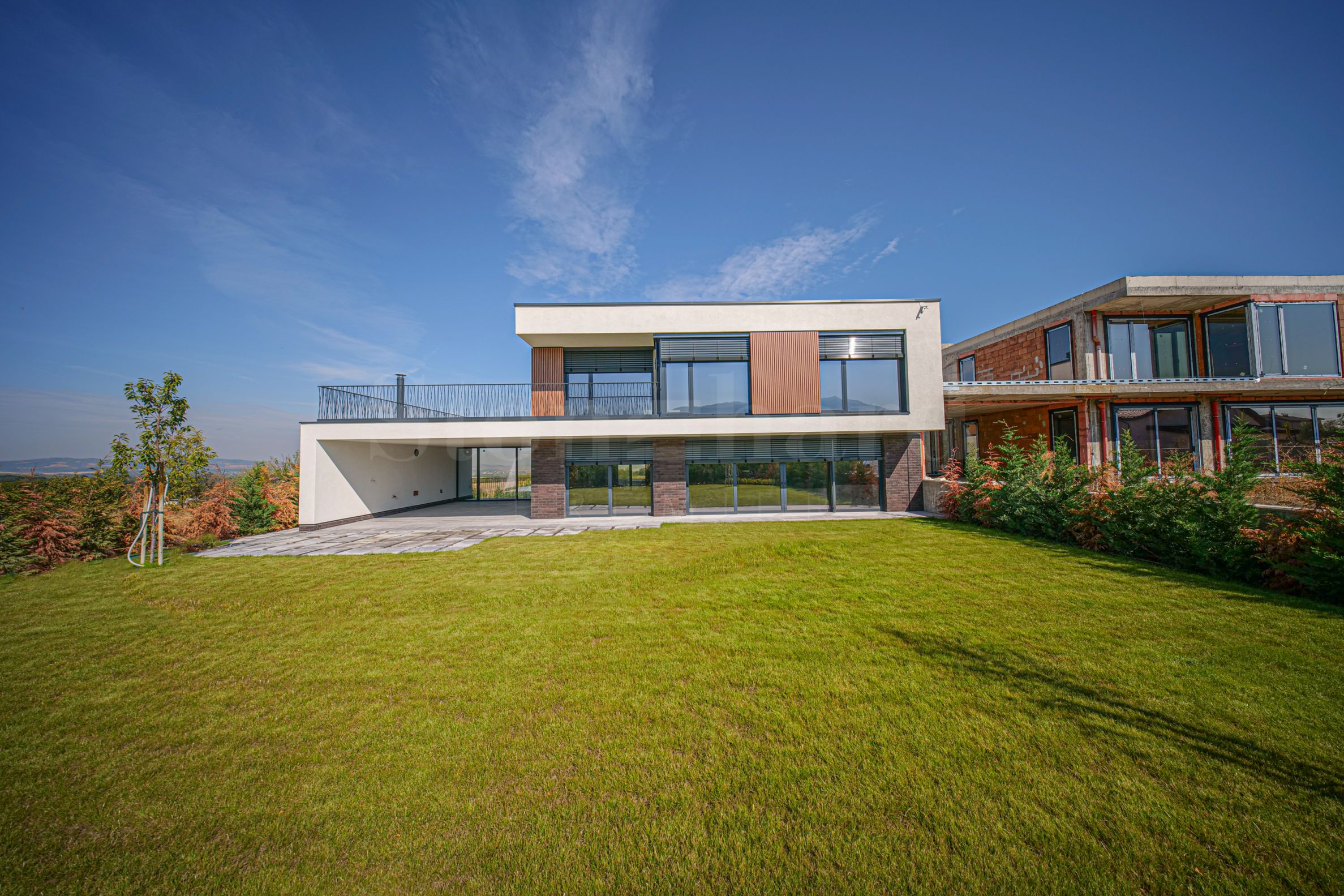 A new house with a yard and views of Vitosha in a gated complex