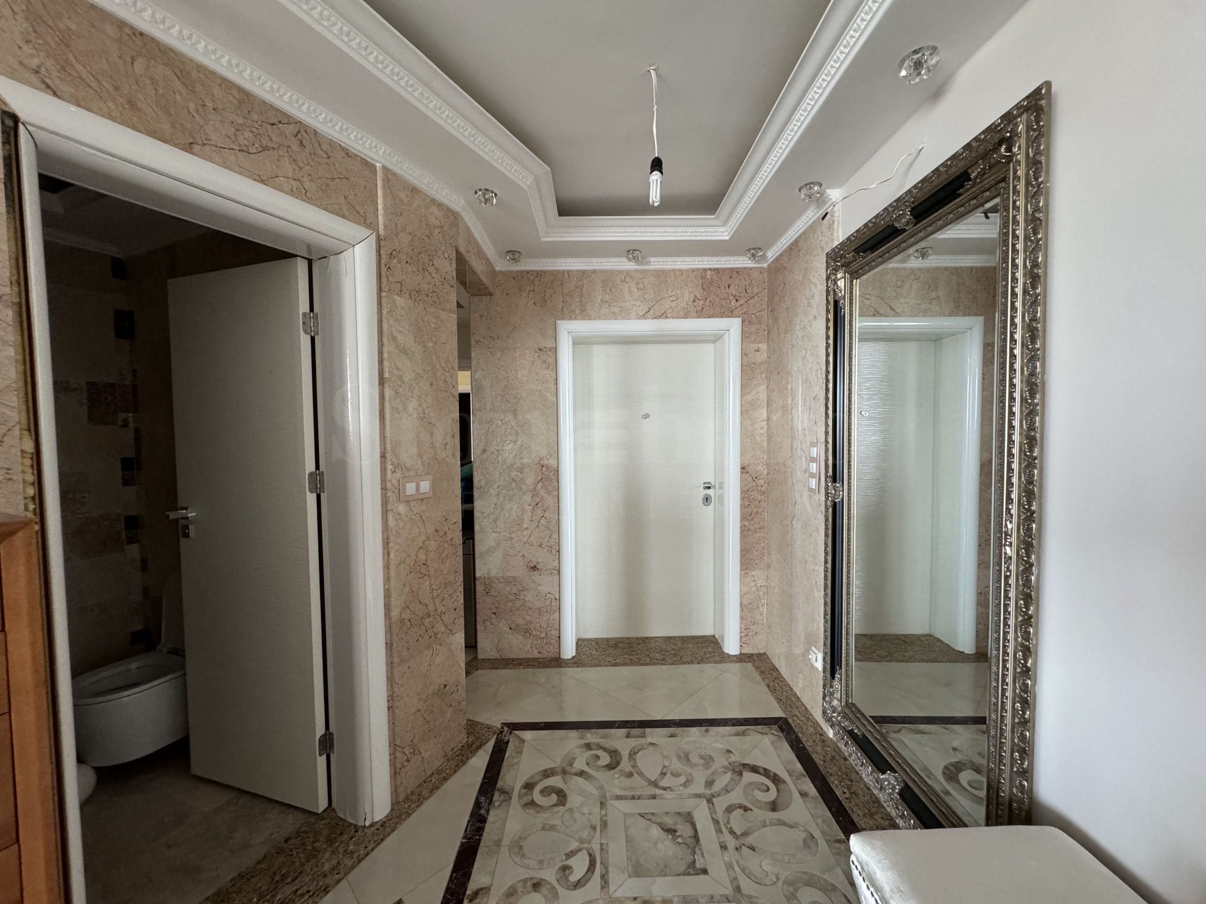a large glazed terrace that covers the entire perimeter of the apartment. Furnishings The apartment is qualitatively finished with luxurious finishing works. The walls and floors are partly marble and the tiling and floors in the bathrooms are stone, giving a stylish finish.