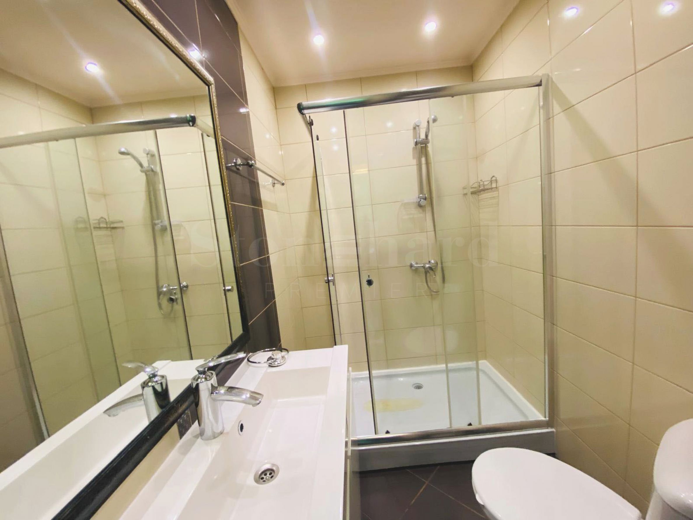 The apartment is fully furnished and equipped for a comfortable life. The rooms have laminate floors, in the corridor and the kitchen - granite tiles. The bathroom - with terracotta and faience, sanitary, shower cabin. Heating is with air conditioners.