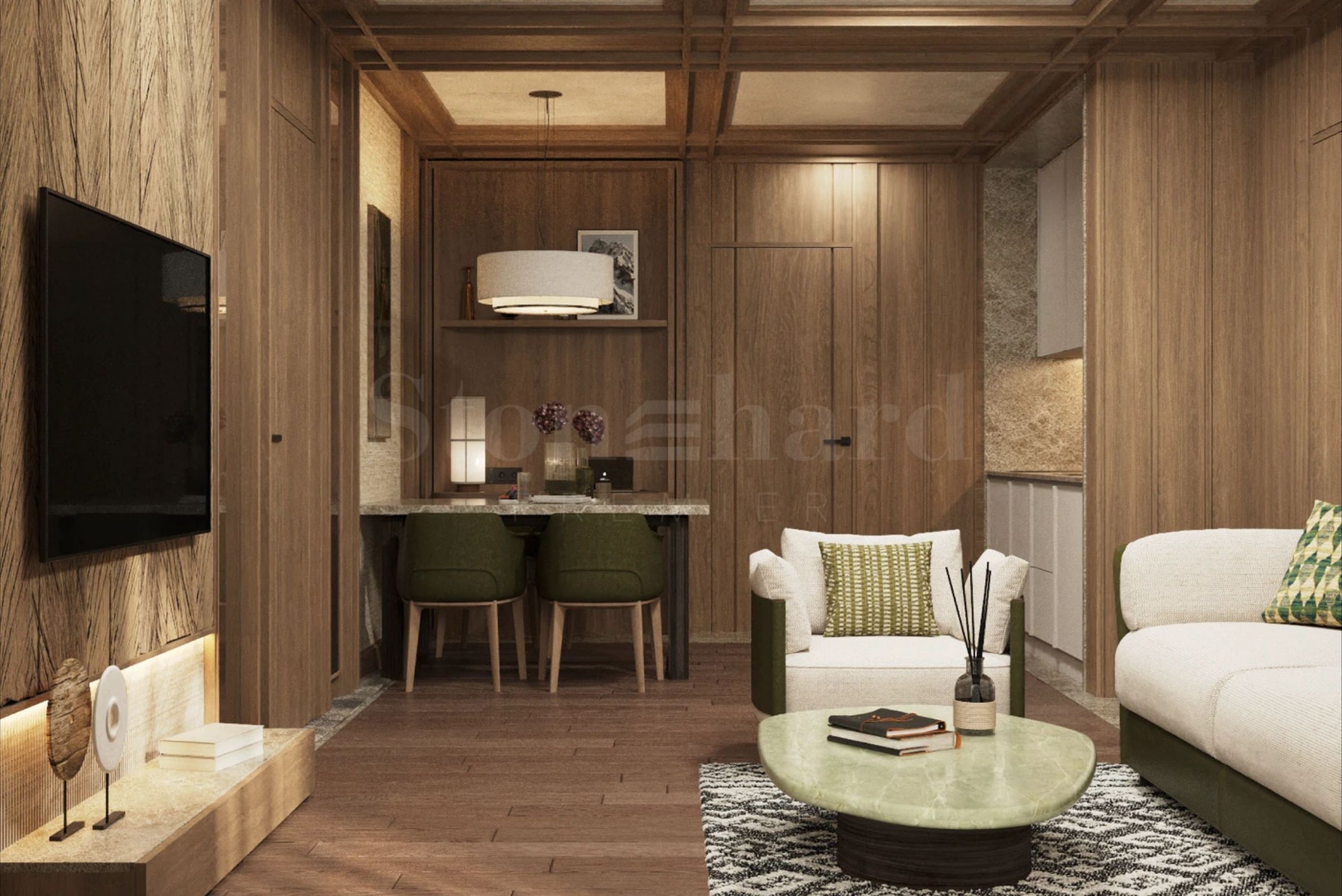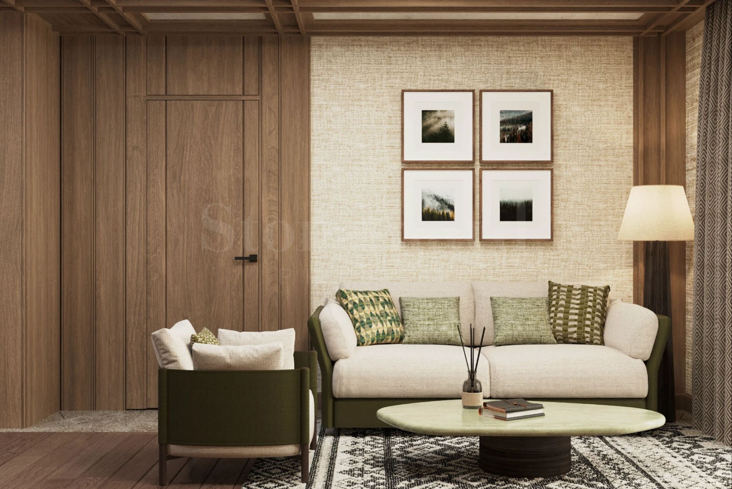 A wide selection of studio, one-bedroom, and two-bedroom apartments is available, along with spectacular luxury mountain houses. All properties are delivered fully finished (“turnkey”), including completed bathrooms. Buyers can purchase a fully furnished residence or customise their home from the outset.