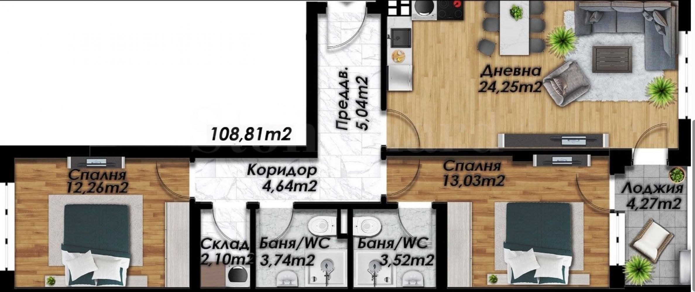 Housing areas: 108.81 m 2