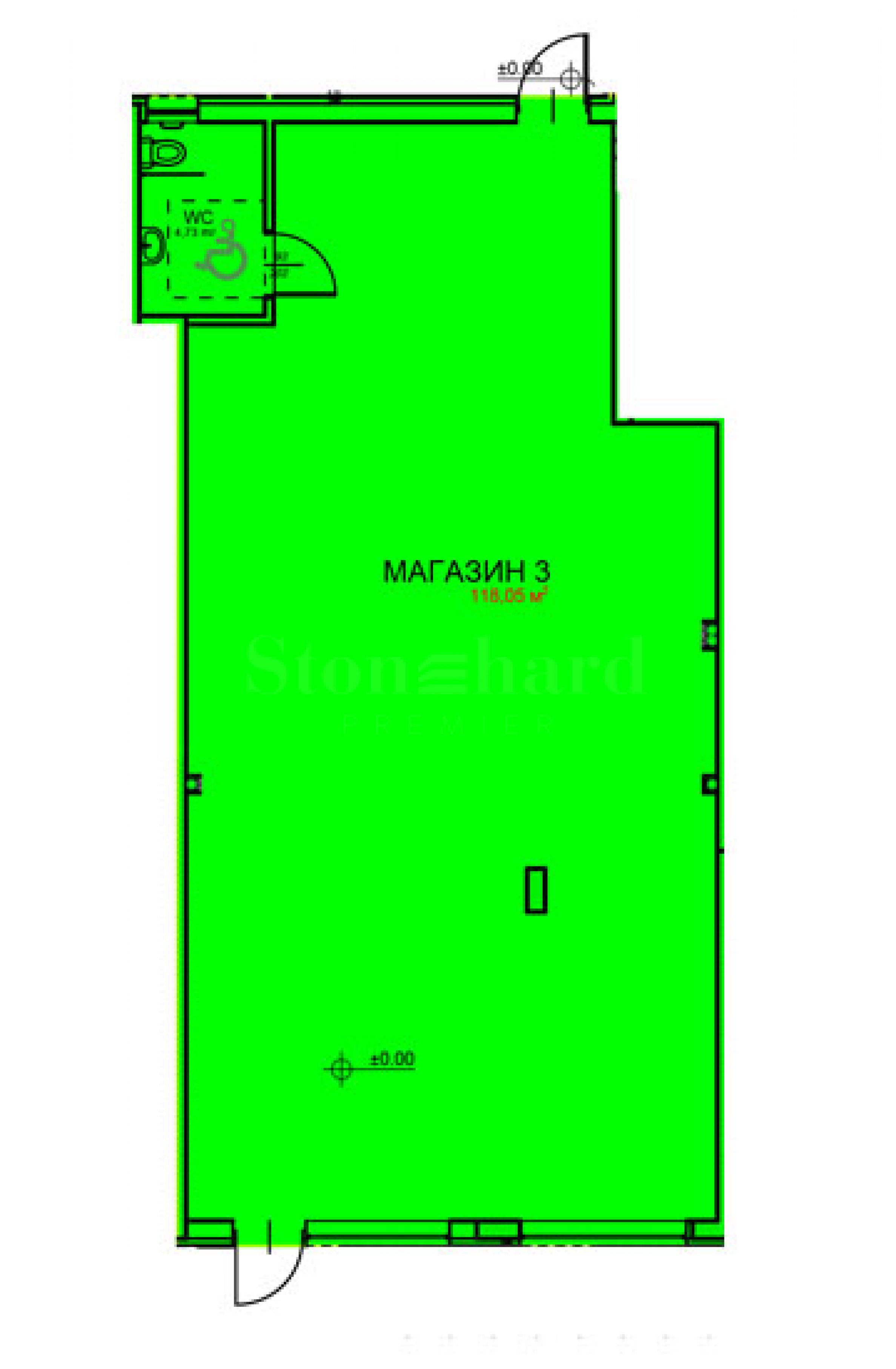 Shop No. 3 is located on the 1st floor and has a total area of 140.48 sq m, includes a bathroom. It is offered in a degree of completion according to Bulgarian Civil Code.