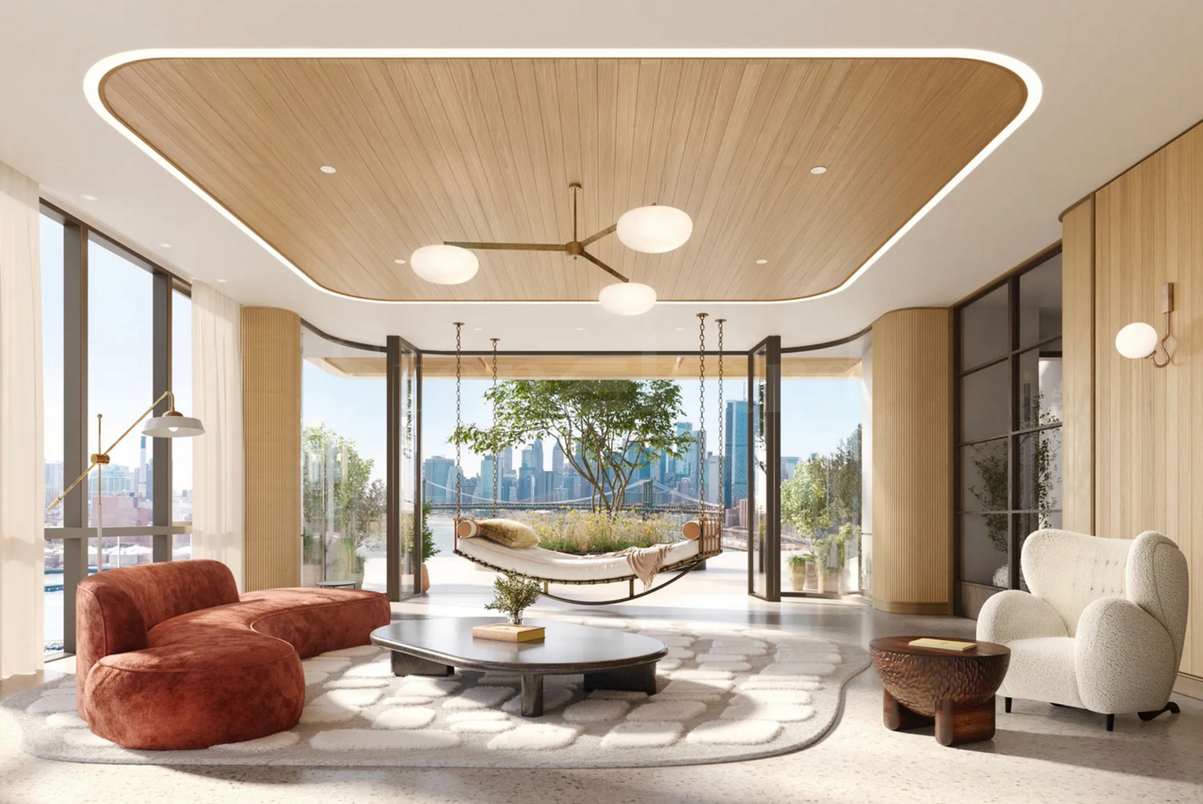 At One Williamsburg Wharf, the interior spaces are designed with ultimate comfort, productivity and enjoyment in mind. Elegant private lounges, entertainment rooms, a cinema, a library, shared workspaces, as well as quiet green areas are ideal for meditation, focus and inspiration, or simply enjoying the sunrise over the river. Whether you are holding a business meeting or sharing a glass of wine with friends, the atmosphere is always stylish, cozy and inspiring.