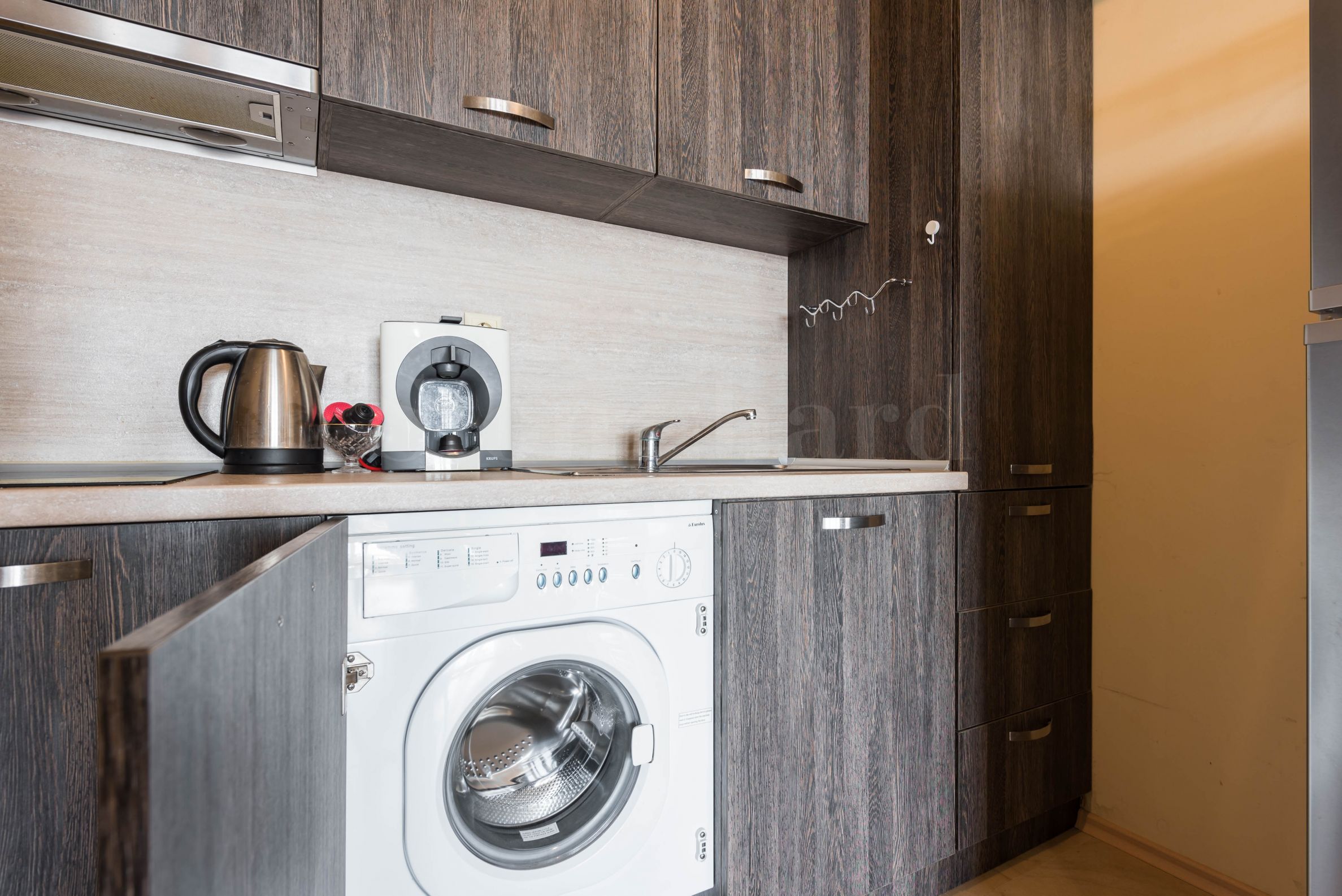 The apartment is furnished with attention to detail and a high standard of quality and comfort. The furniture is functional and stylish. The bathroom is equipped with a shower cabin, washbasin, toilet and bidet. The kitchen and the living room are fully equipped. Each room is air-conditioned.