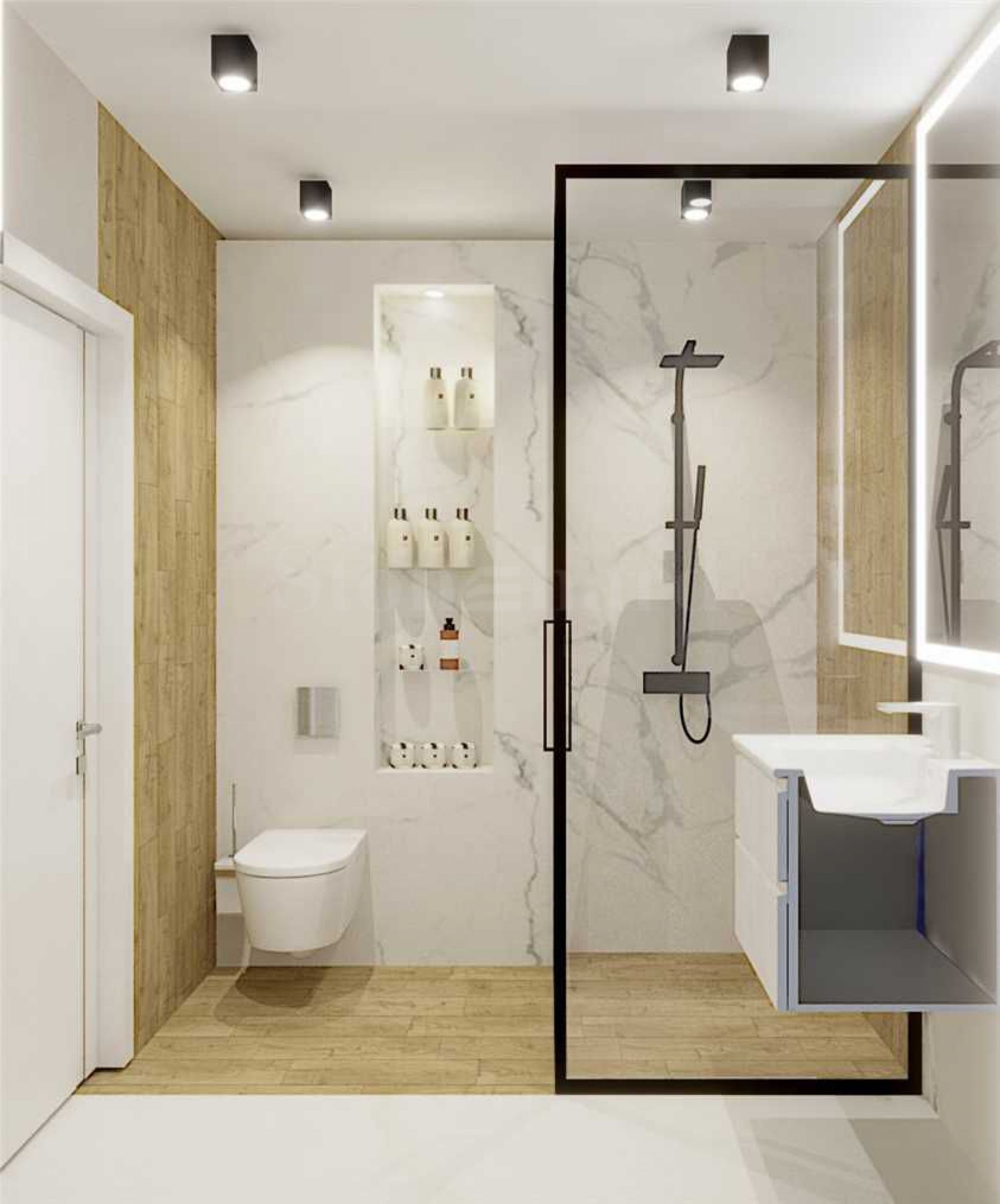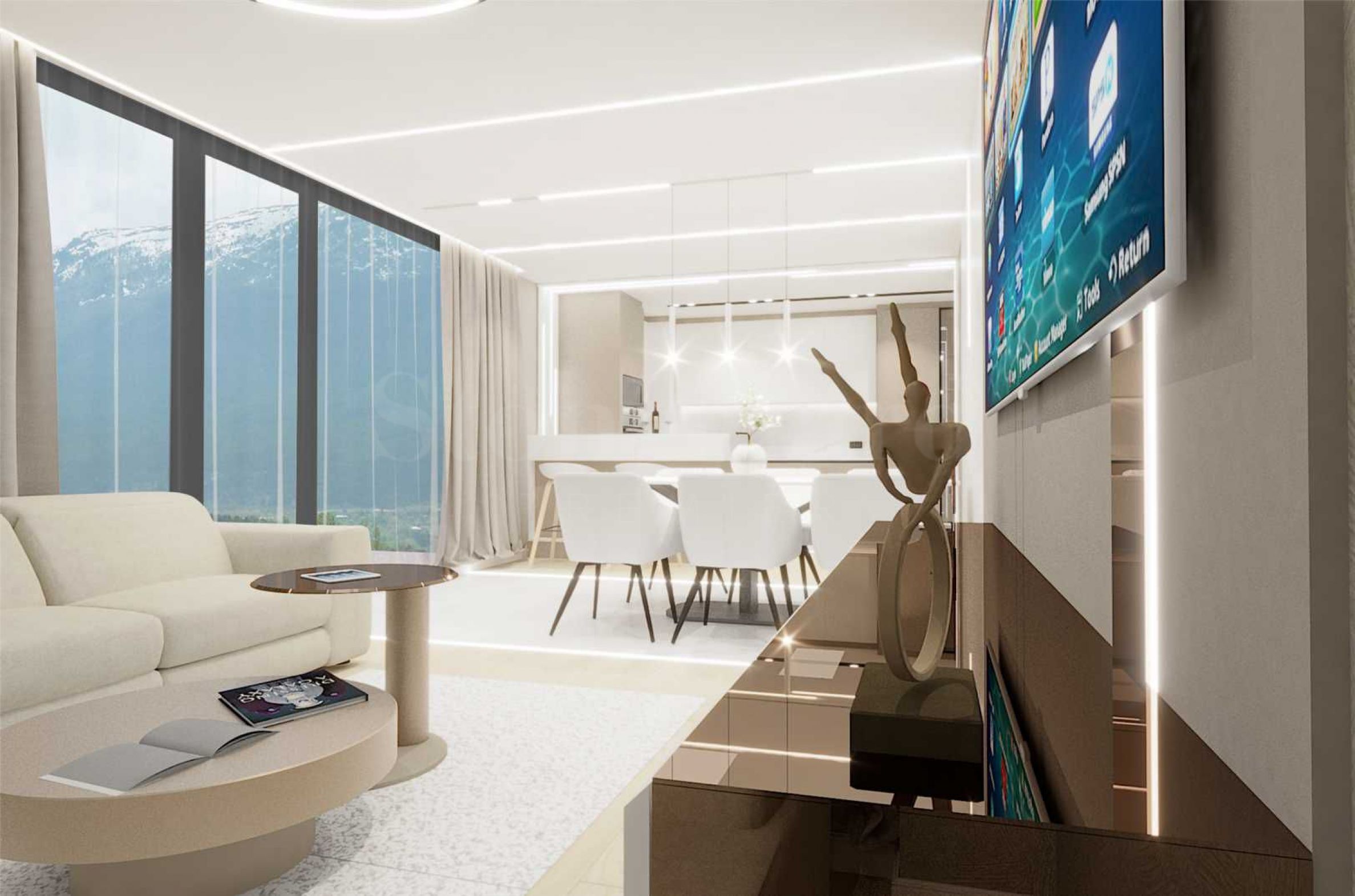 The apartment is part of a modern complex at the foot of Vitosha Mountain, with impressive architecture with clean lines and a suspended facade of large-format Laminam slabs. It is designed with attention to detail, offering: