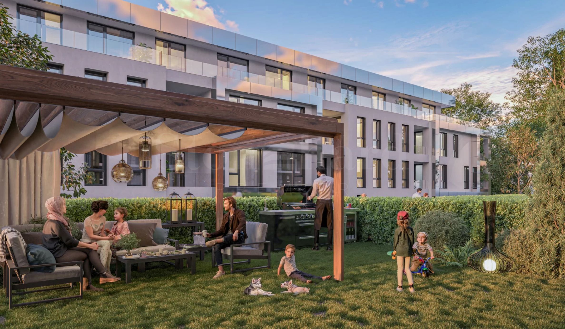 • a landscaped garden with a playground and a pet area is provided, providing an ideal place for relaxation and outdoor entertainment.