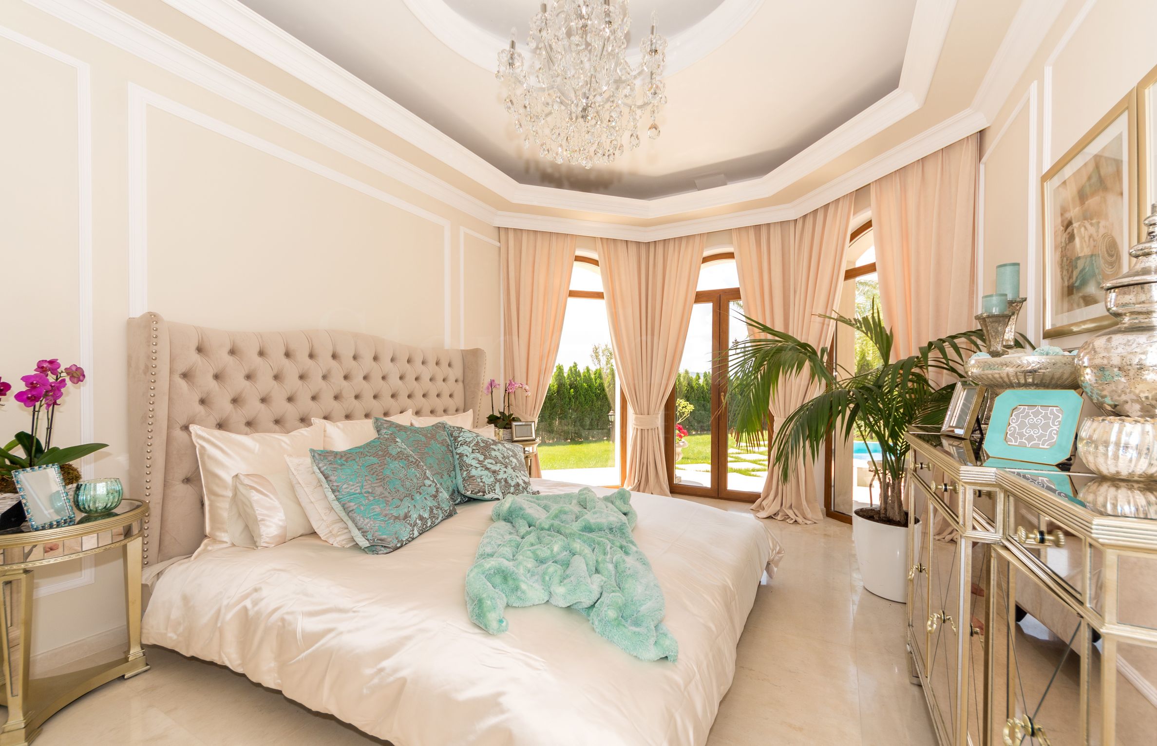 The interior of the villa is luxuriously finished and furnished with individually designed furniture, designer stained glass windows and high-class natural materials that add sophisticated style and elegance.