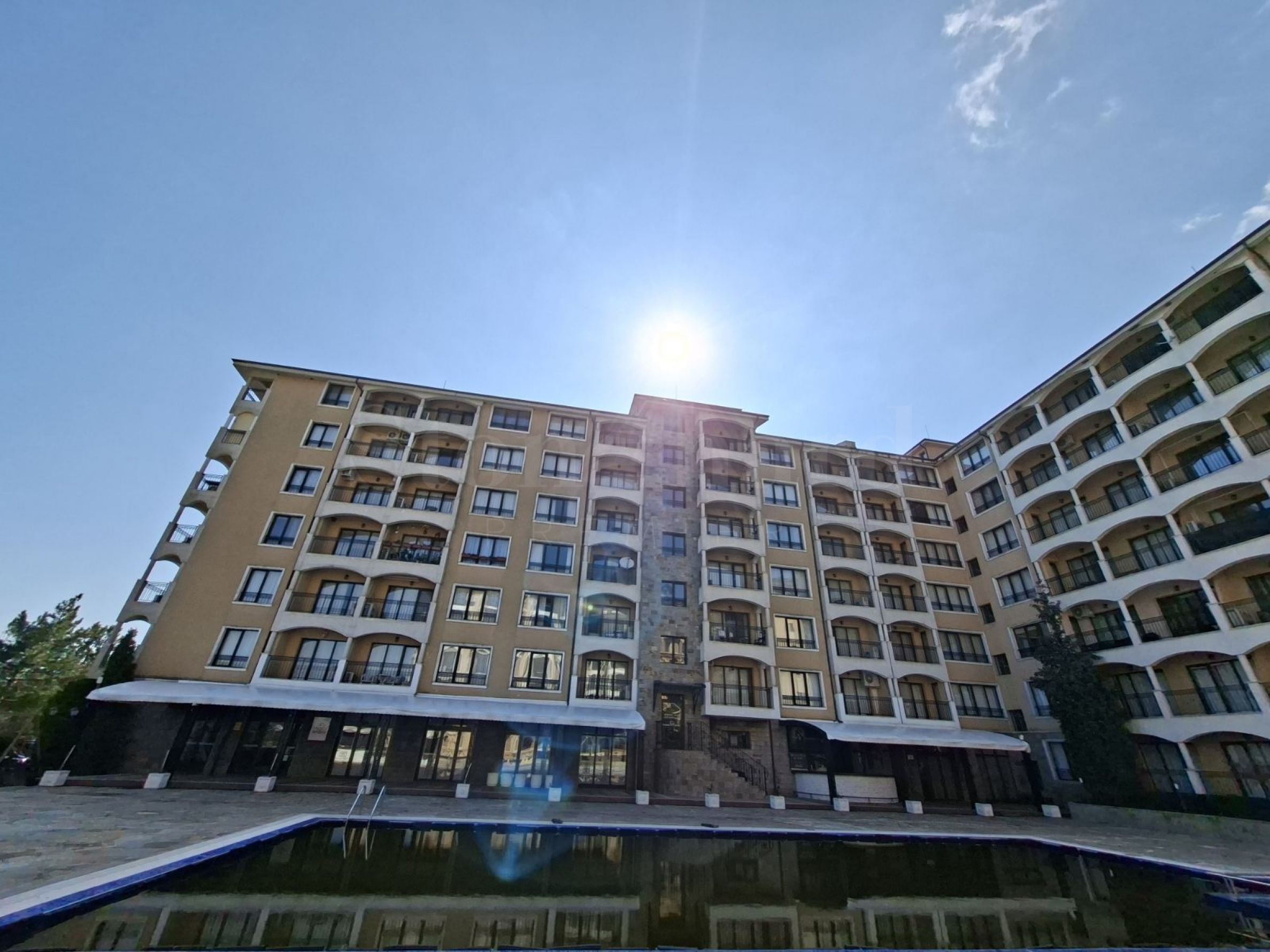 One-bedroom apartment with sea views in a complex with a swimming pool in Golden Sands