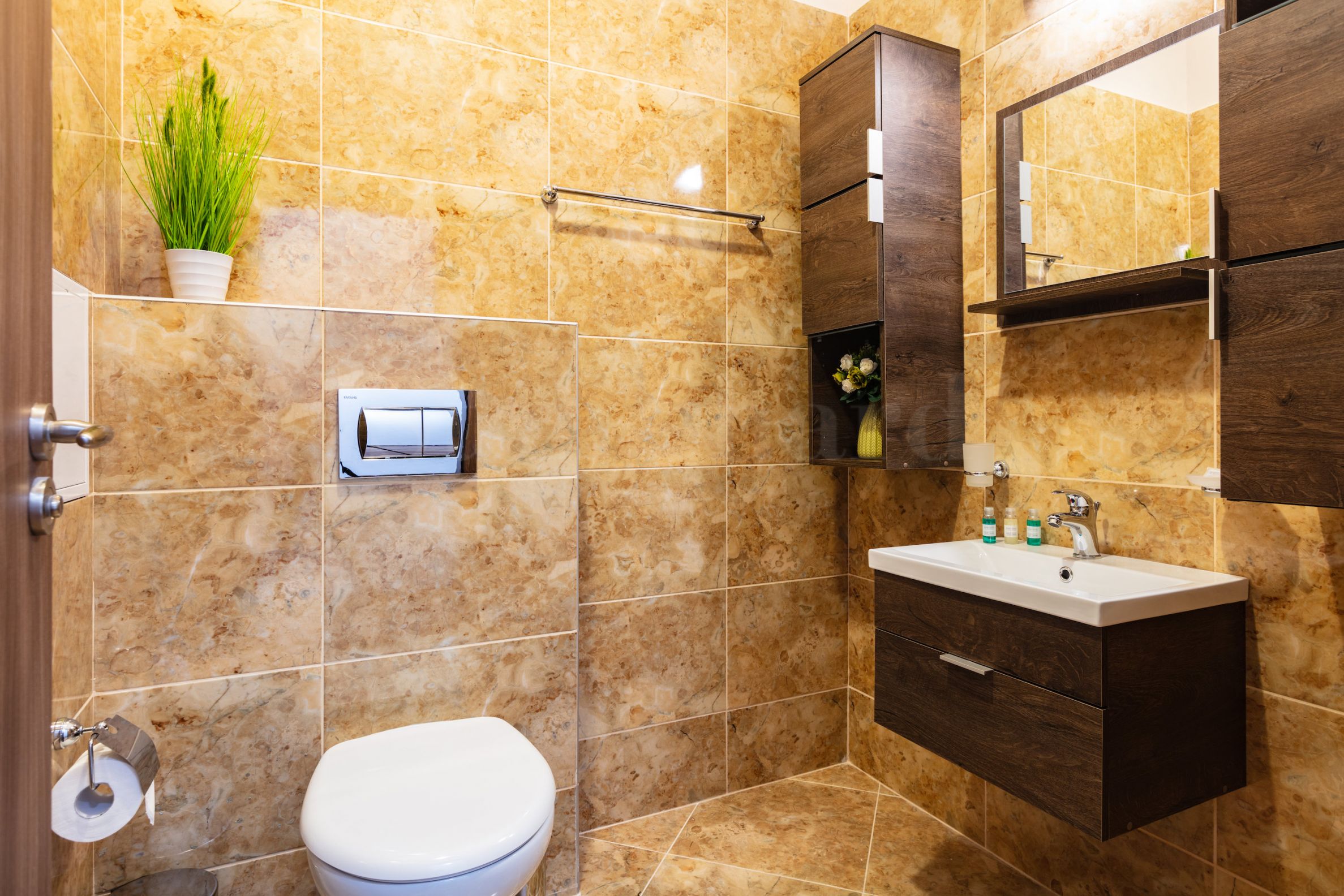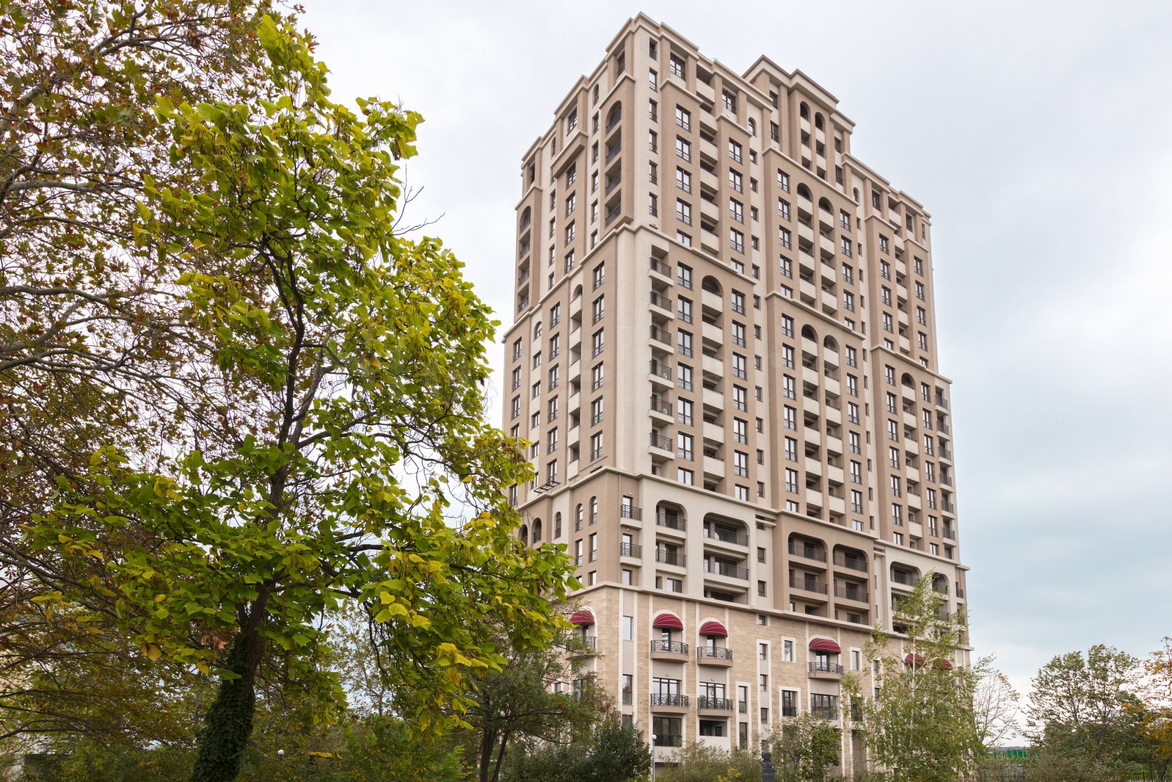 There is a choice of 237 studios and apartments with 1-, 2- and 3-bedrooms with size between 46 sq.m and 324 sq.m, with storage areas and views towards the sea, the city and the lake. All apartments are "turnkey", while the common areas are luxuriously designed with marble, recessed lighting and large panoramic windows.