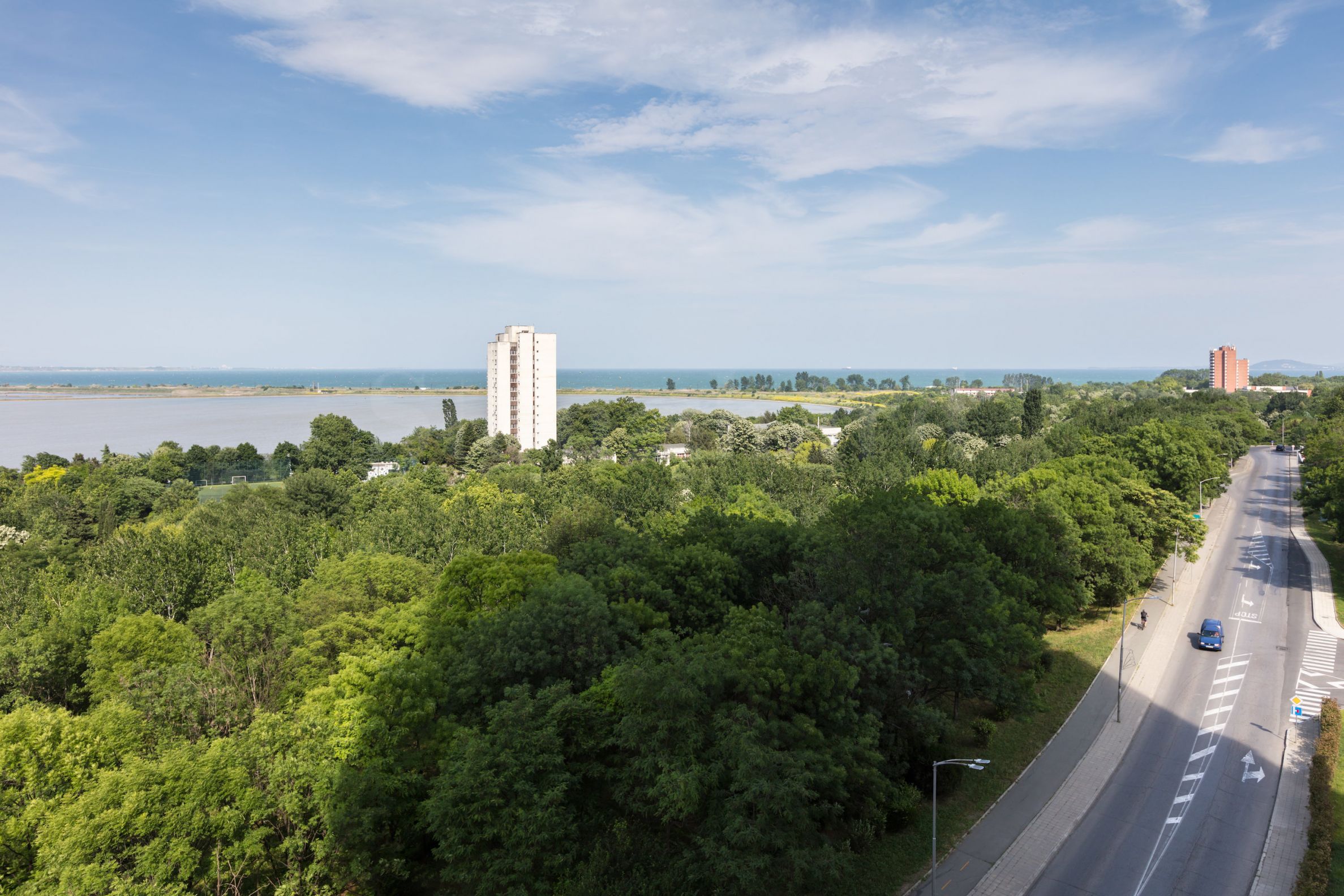 The building has its own underground and ground parking area and is situated in the center with direct access to the sea and the beach of Burgas, placed between Lazur stadium and the English Language School in Bourgas, adjacent to the main road and the bus lines to Sunny Beach, Nessebar, Pomorie and the airport, and the city bus connecting Zornitsa district to the city center, the railway station and the bus station.