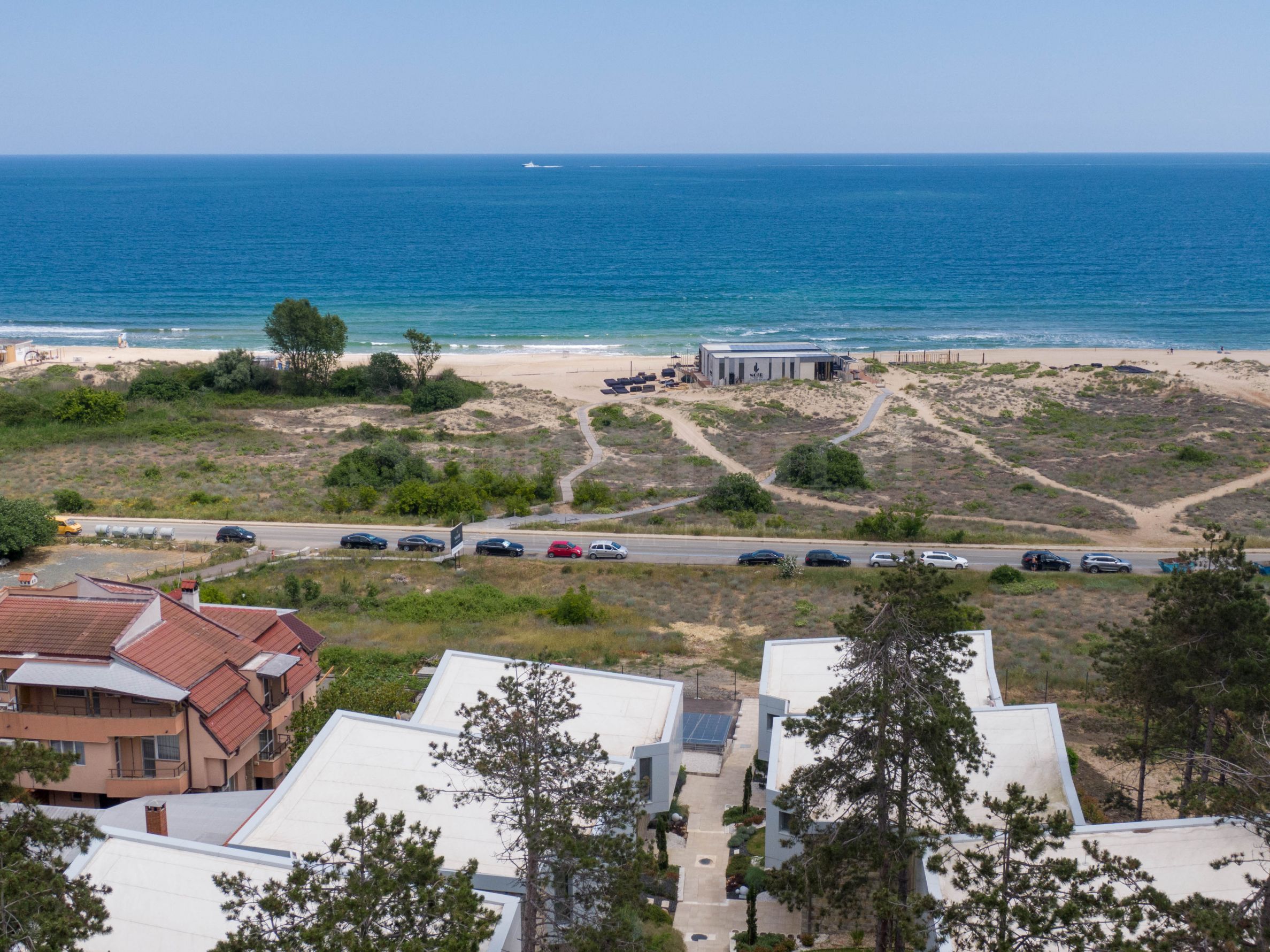 Nowoczesny dom jest częścią nowego kompleksu 6 willi z kontrolowanym dostępem, położonych w pierwszej linii morza, obok najpopularniejszej plaży w pobliżu Sozopola - Kavatsite.