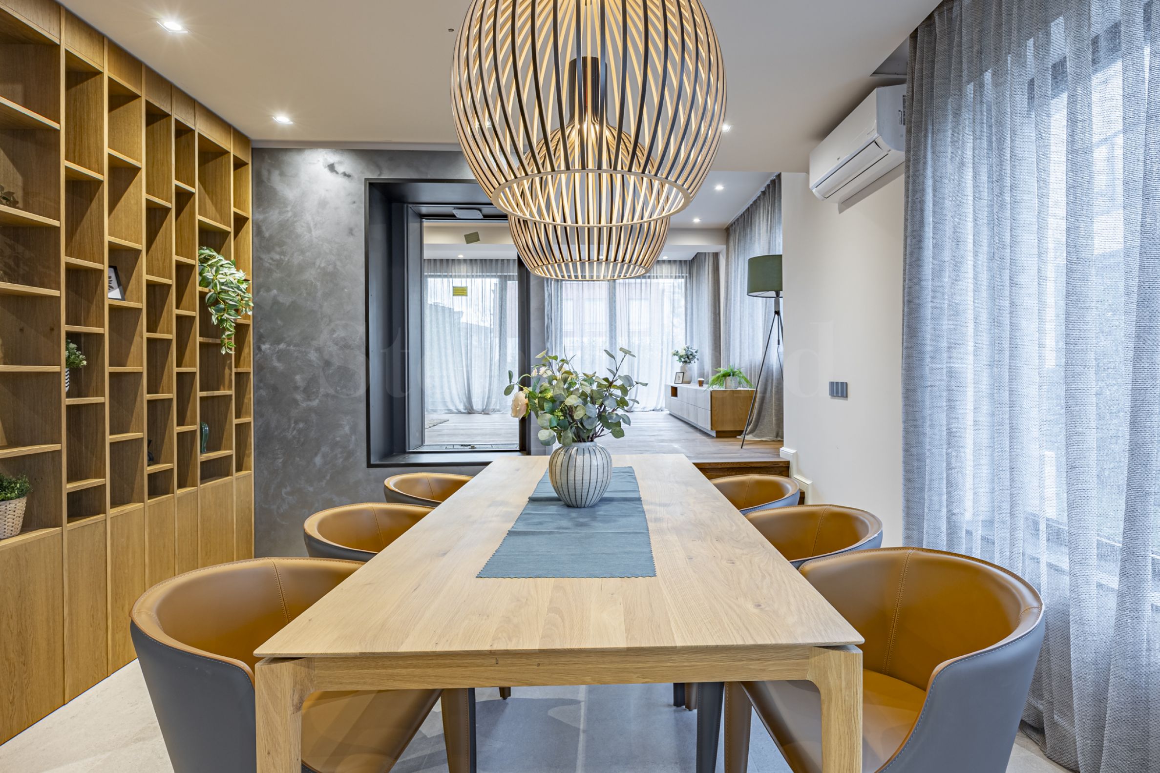 Dom wykończony w najwyższym standardzie, z izolacją termiczną XPS o grubości 10 cm na ścianach zewnętrznych i 14 cm na suficie i tarasach. Dachy pokryte są dachówką betonową Bramac. Dom jest zgazowany i wyposażony w grzejniki, a wybór i instalacja kotła gazowego pozostają w gestii właścicieli. Ogrzewanie jest elektryczne, dostępne są również klimatyzatory. Stolarka jest siedmiokomorowa, z potrójnymi szybami najwyższej klasy, o doskonałej izolacji cieplnej i akustycznej, dzięki panoramicznym oknom z systemem przesuwnym Schüco LivIng Slide.