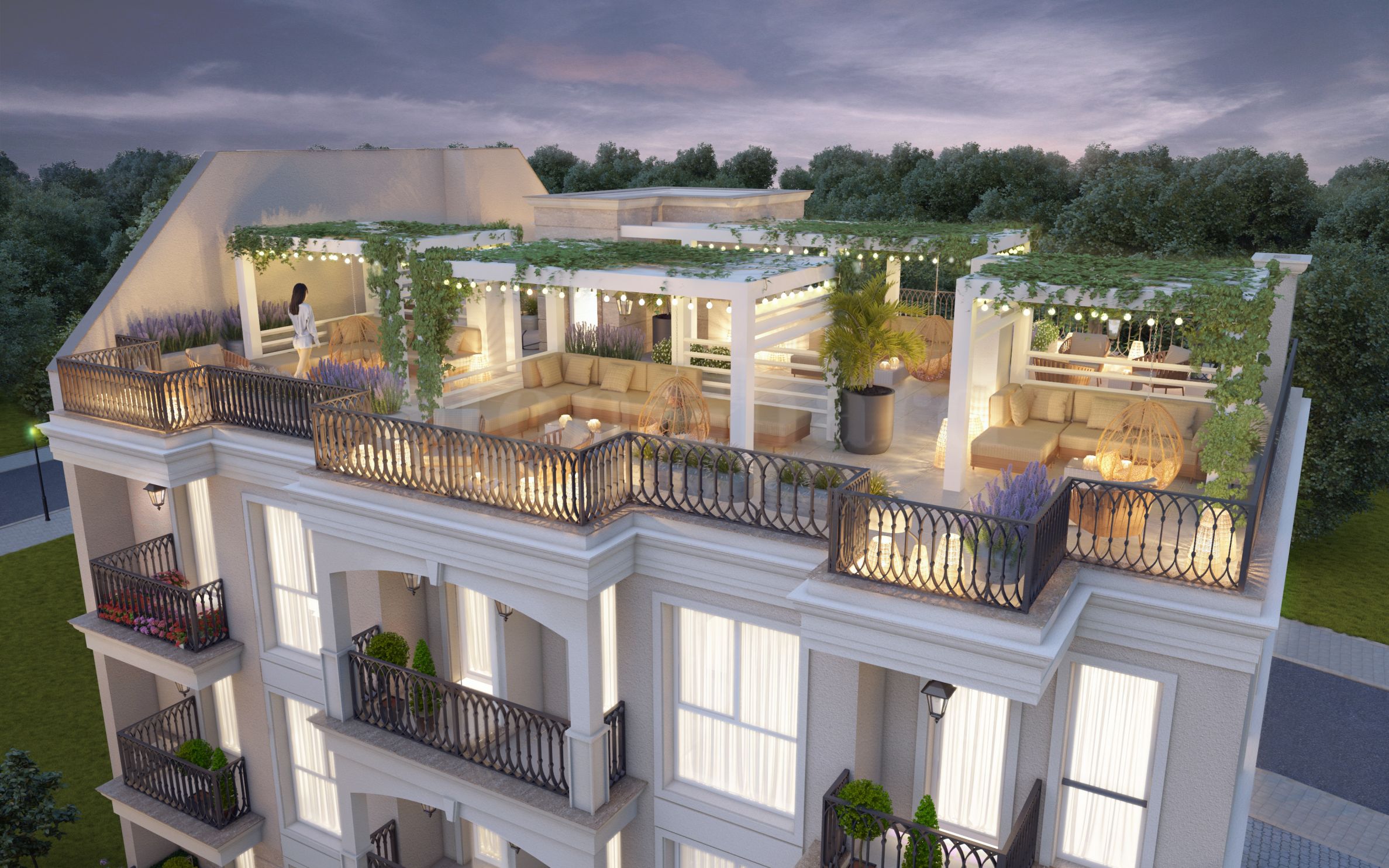 Właściciele apartamentów na trzecim piętrze będą mieli prawo do wyłącznego korzystania z windy z chipem i dostępu do prywatnych, otwartych tarasów letnich. Tarasy pełnią funkcję stref wypoczynkowych, idealnych do opalania, spędzania przyjemnych wieczorów i relaksu pod rozgwieżdżonym niebem. Będzie możliwość zbudowania grilla i kuchni letniej.