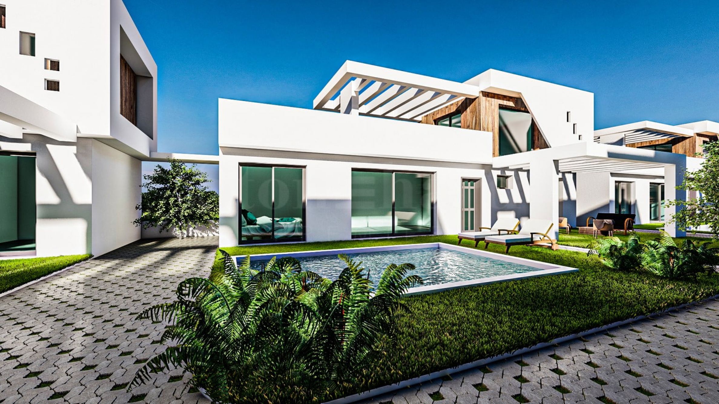 Emerald Island łączy w sobie luksusowy wygląd, wysokiej jakości materiały budowlane i nowoczesną architekturę. Kompleks składa się z 29 domów jednorodzinnych i bliźniaczych, położonych zaledwie 70 metrów od pięknej plaży Thassos. W trosce o maksymalny komfort mieszkańców przestrzeń zaprojektowano z dużą ilością zieleni pomiędzy budynkami oraz prywatnymi basenami na dziedzińcach posesji.