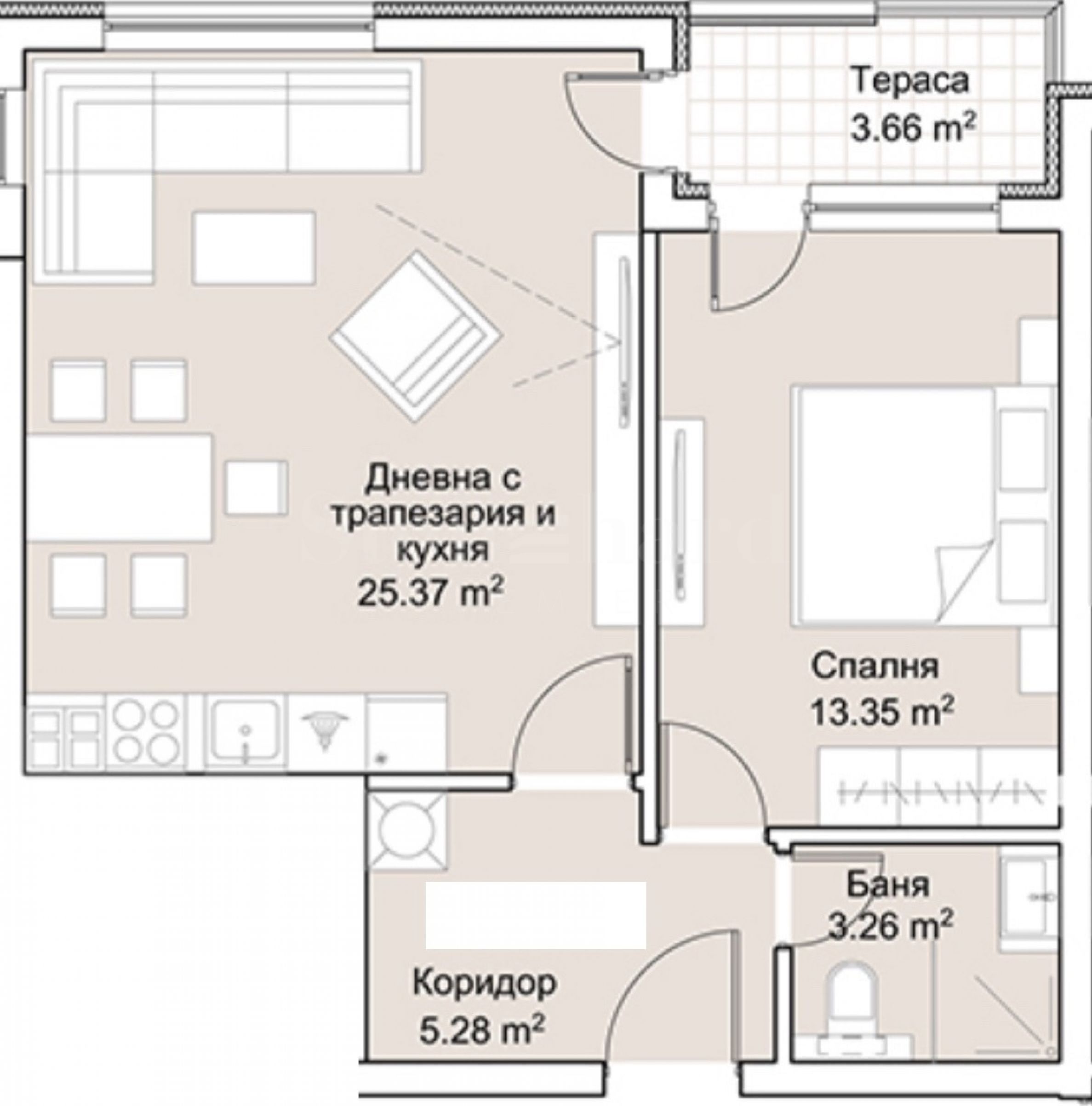 Apartament oferuje funkcjonalny układ i przyjemny widok na zielony dziedziniec kompleksu. Apartament znajduje się w spokojnej wewnętrznej części dzielnicy Lozenets - kilka kroków od Hunting Park, Zoo, Paradise Center i stacji metra Vitosha, z wygodnym i szybkim dostępem do Cherni Vrah Blvd. i centrum miasta.