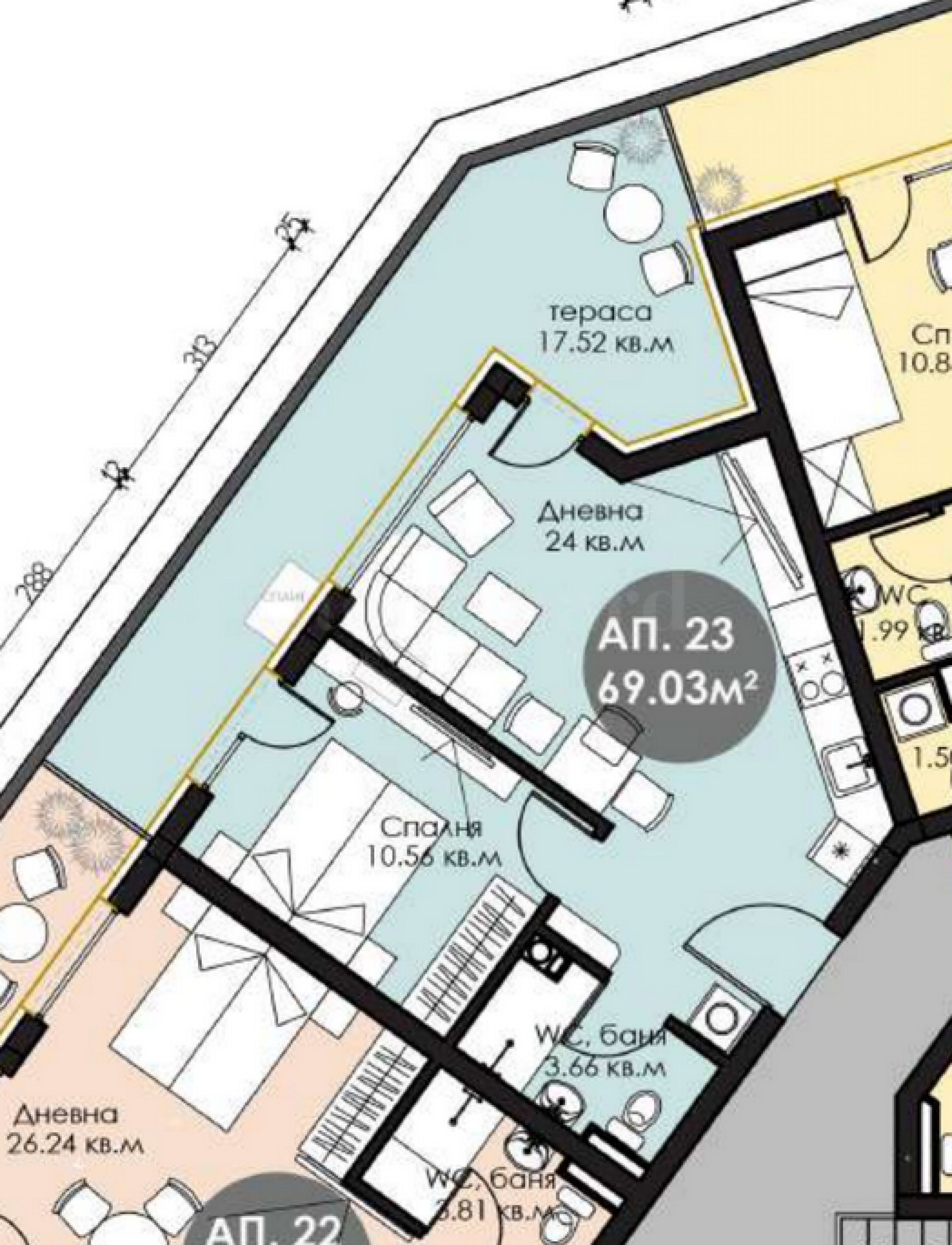 Obszary mieszkaniowe: 69.03 m2