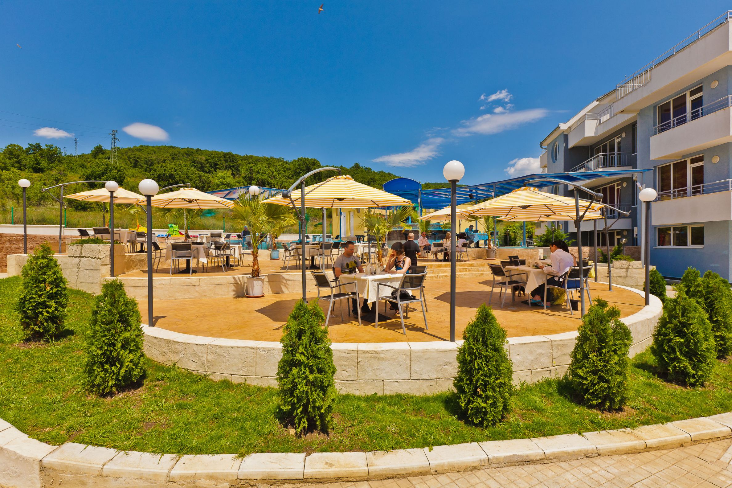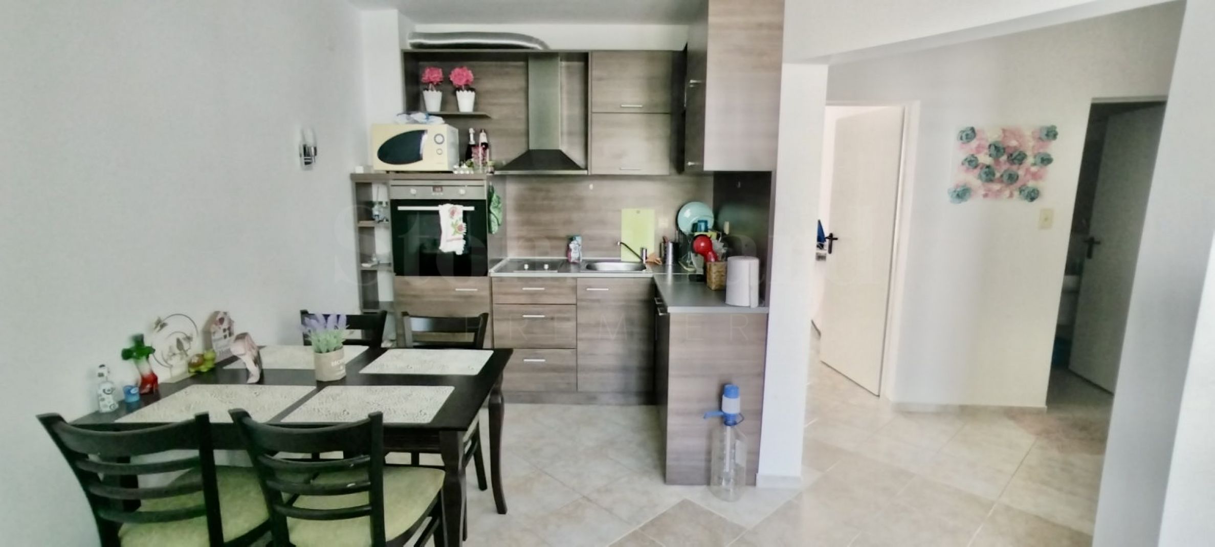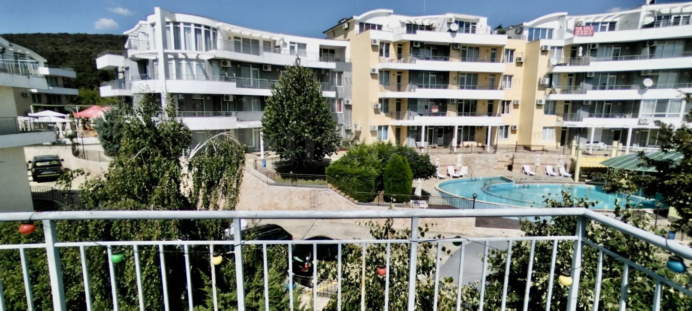 Układ: hol wejściowy, salon z kuchnią i jadalnią, sypialnia, łazienka z toaletą, dwa tarasy. Z tarasów roztacza się widok na wzgórza Starej Planiny, basen i wewnętrzny dziedziniec kompleksu oraz zatokę Słonecznego Brzegu.
