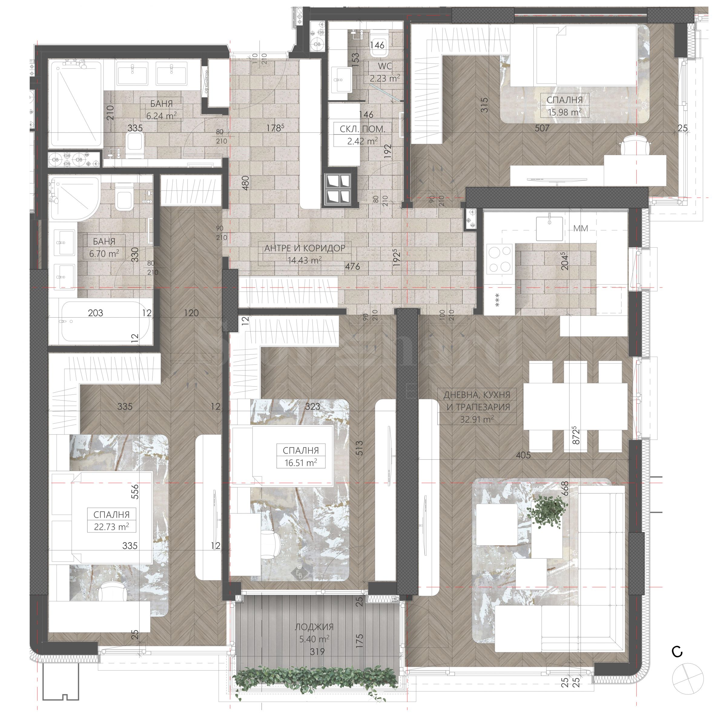 Apartament z czterema sypialniami, z widokiem na południe, w kompleksie Synerga Premium