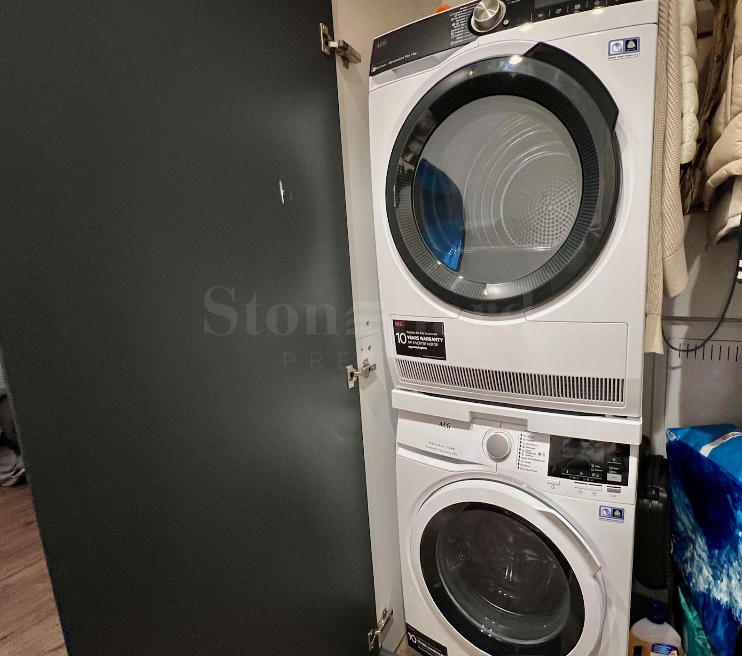 • przedpokój z wbudowaną szafą wnękową z pralką i suszarką;