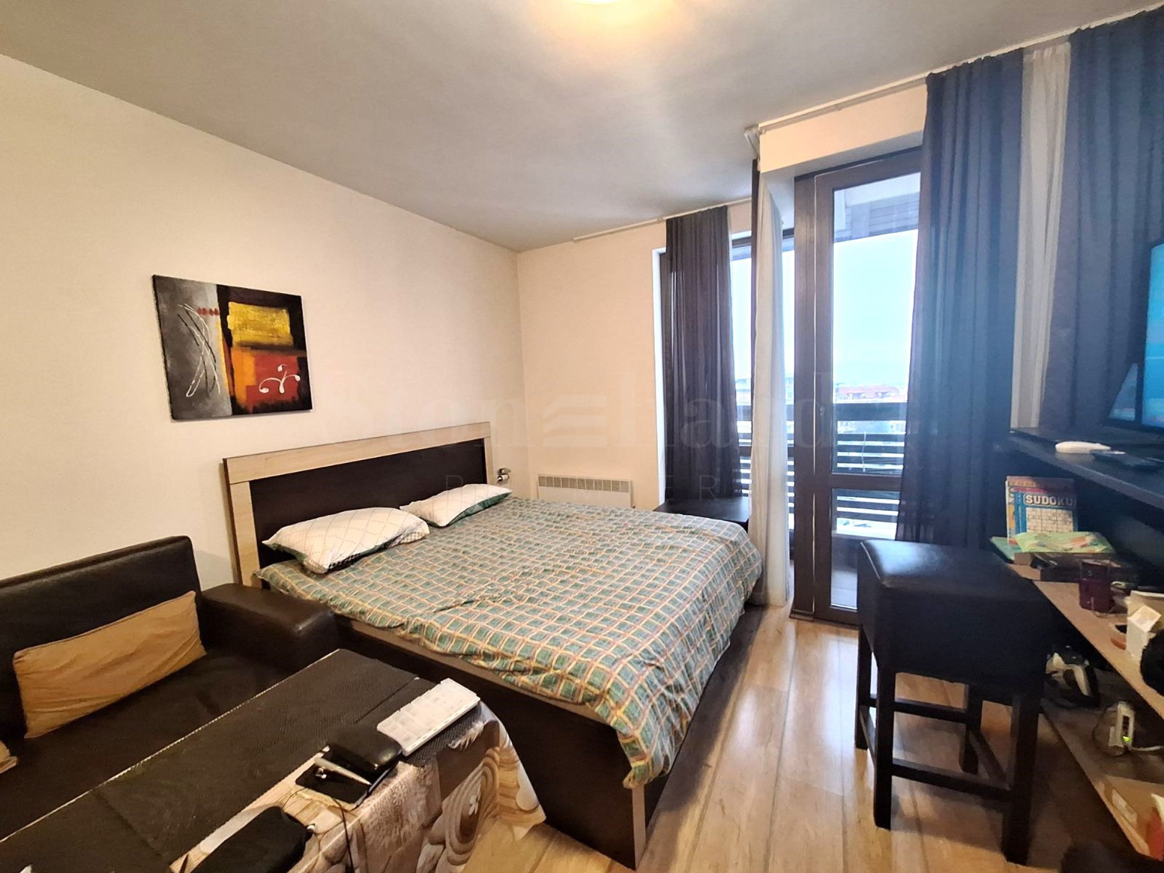 Jednopokojowe studio jest jasne i przytulne, o funkcjonalnym układzie łączącym wygodę i praktyczność.