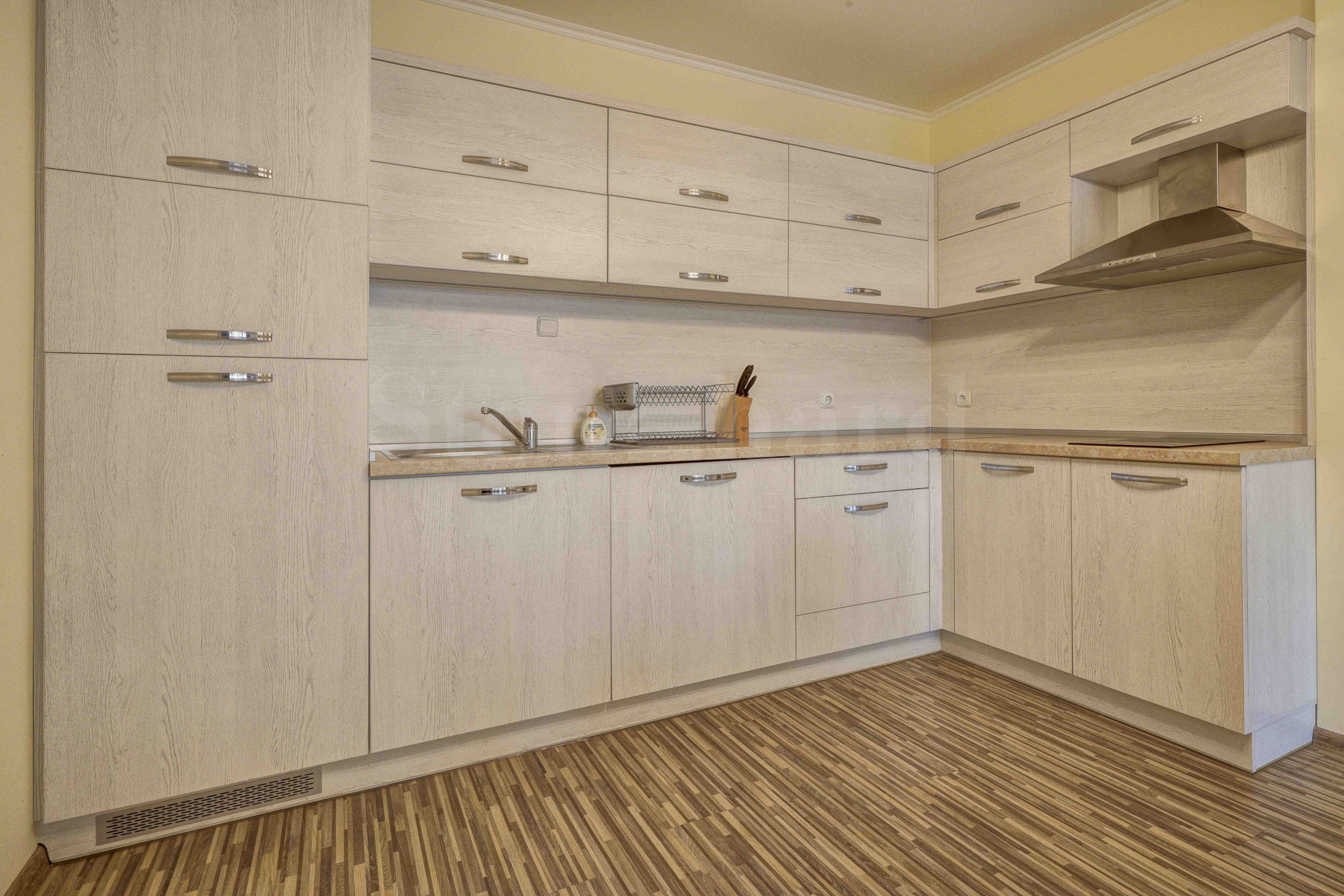 Sprzedawane z meblami i sprzętem AGD. Stosowane są wyłącznie najwyższej jakości materiały, takie jak drewniane dekoracje, wysokiej jakości podłogi i meble. Salon i sypialnia są klimatyzowane, a mieszkanie jest zabezpieczone drzwiami pancernymi z zamkiem i nowoczesnym systemem dostępu oraz nowoczesnym domofonem. Wszystko, czego potrzebujesz, jest dostępne: telewizor z szerokim ekranem, duża lodówka, płyta kuchenna i okap, a nawet przybory kuchenne.
