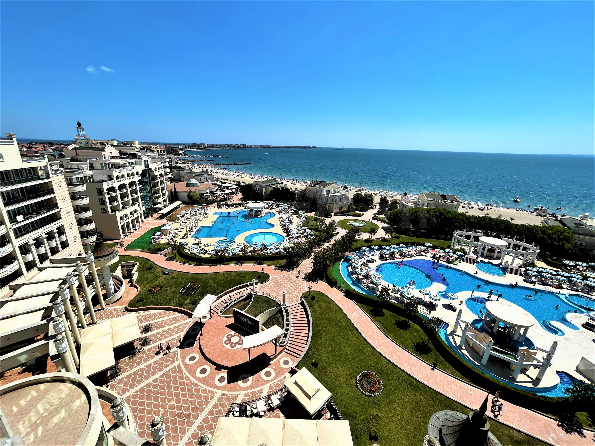 Nieruchomość o powierzchni 88 m² znajduje się na 8. piętrze największego i najbardziej luksusowego budynku kompleksu. Z tarasu roztacza się wspaniały widok na morze, plażę i atrakcje wodne kompleksu.