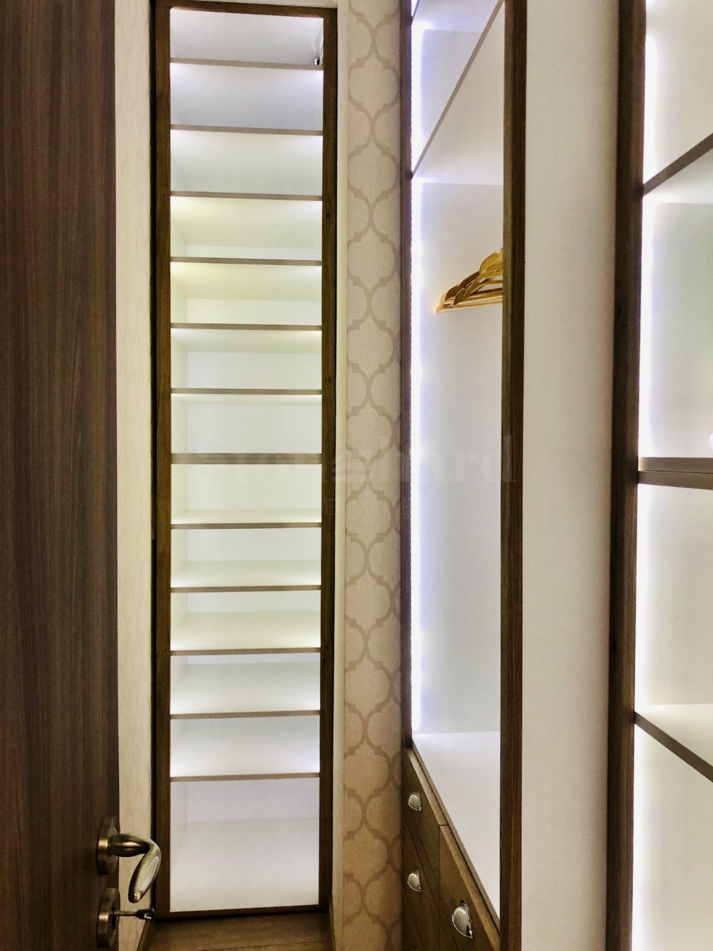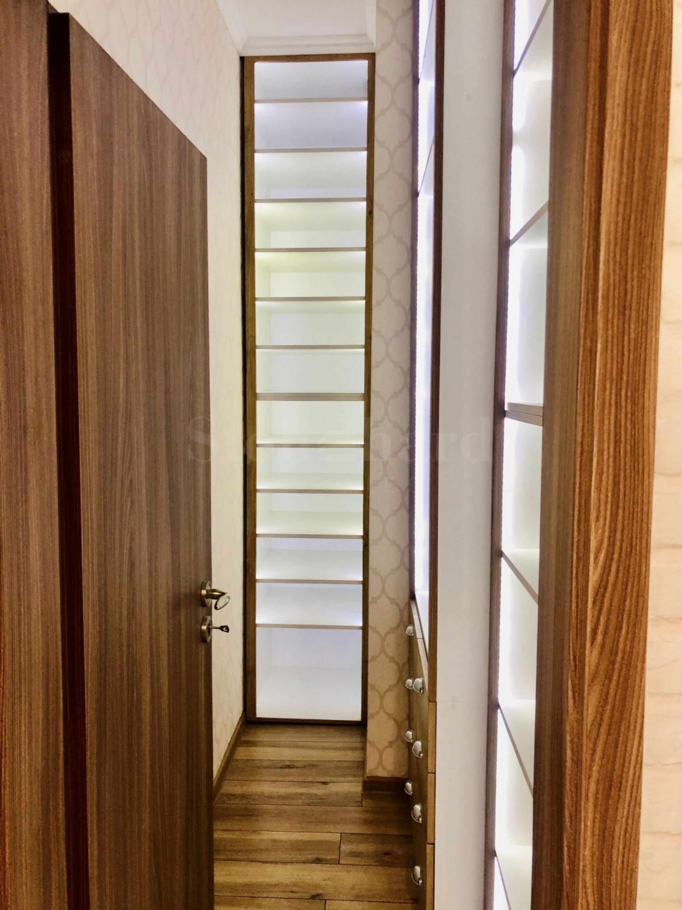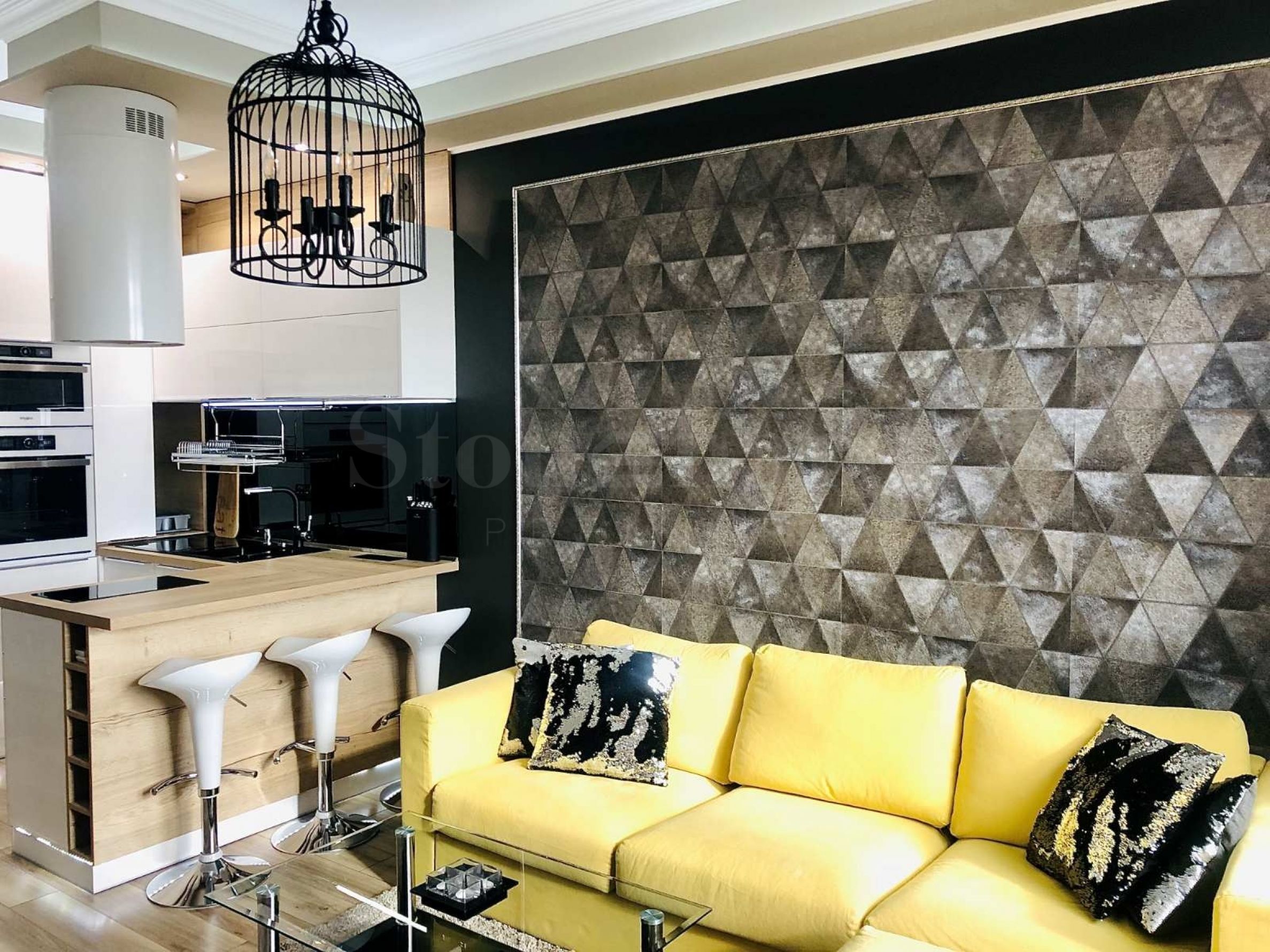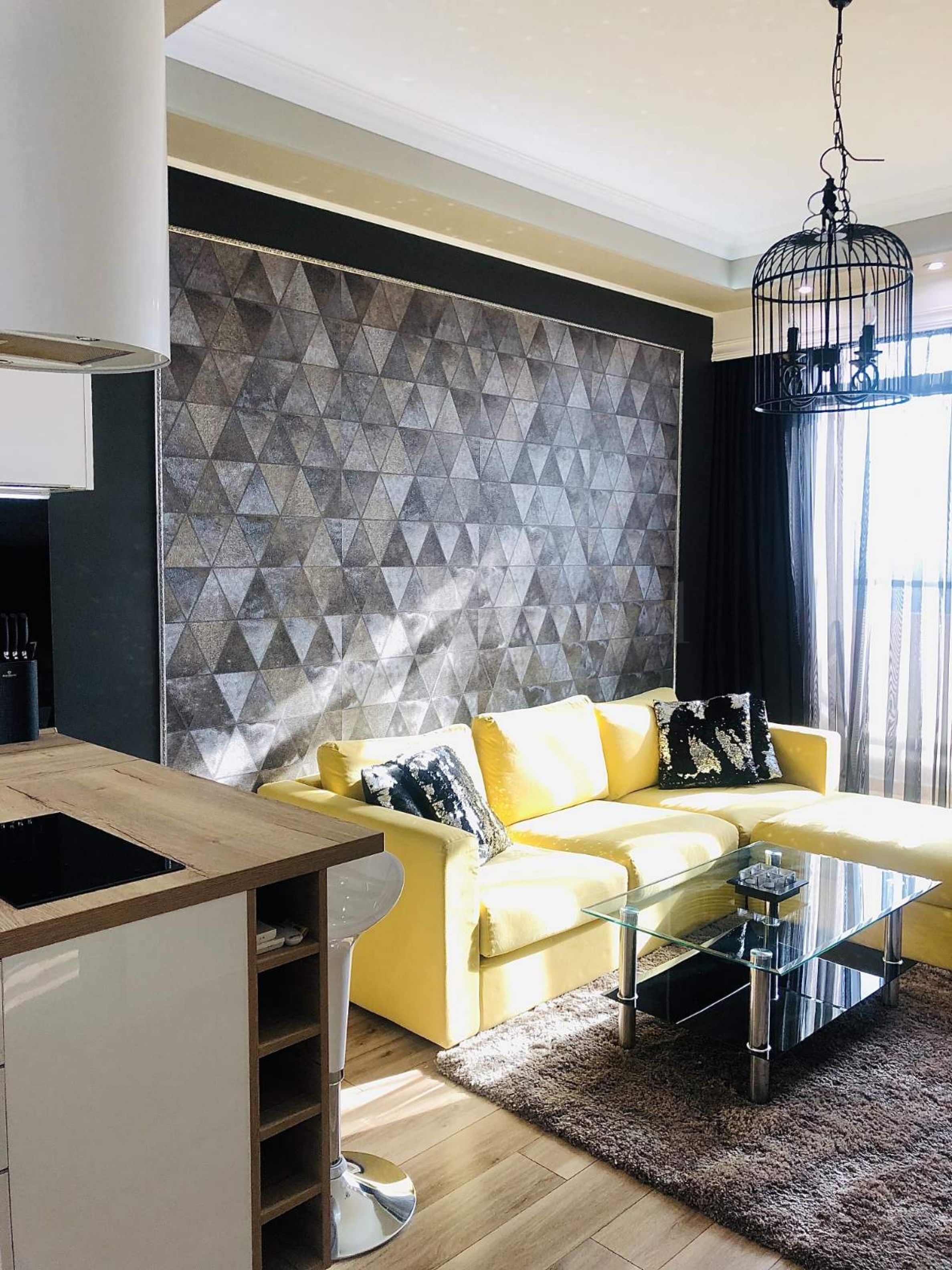 Mieszkanie jest elegancko urządzone, według indywidualnego projektu, umeblowane i wyposażone w sprzęt najwyższej klasy. Składa się z salonu z aneksem kuchennym, sypialni, oddzielnej garderoby, łazienki i toalety, dwóch tarasów z widokiem na miasto i jezioro.
