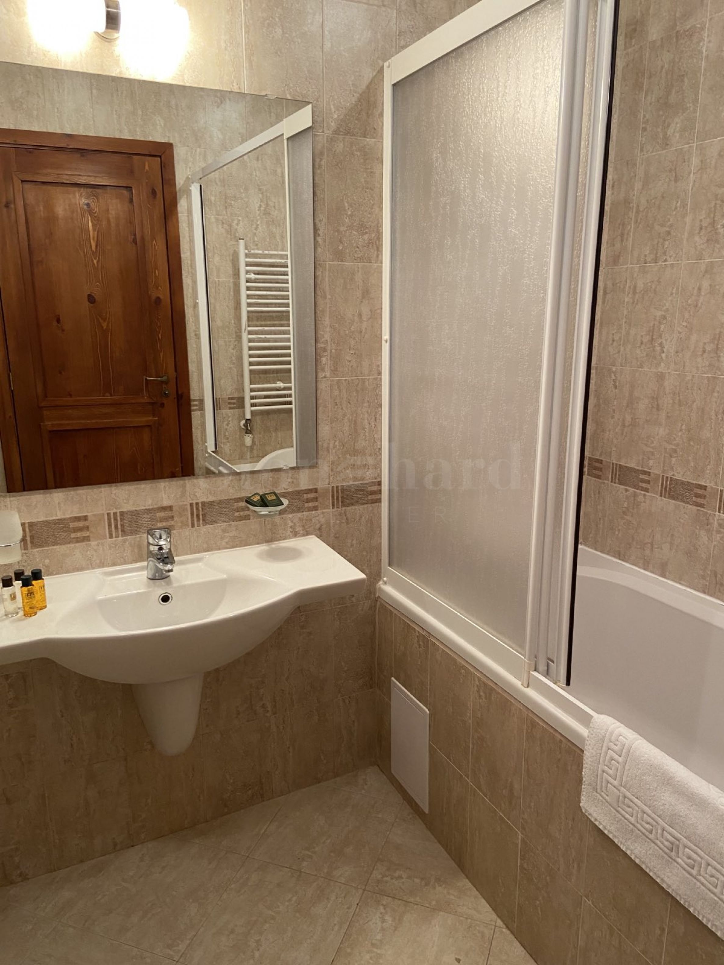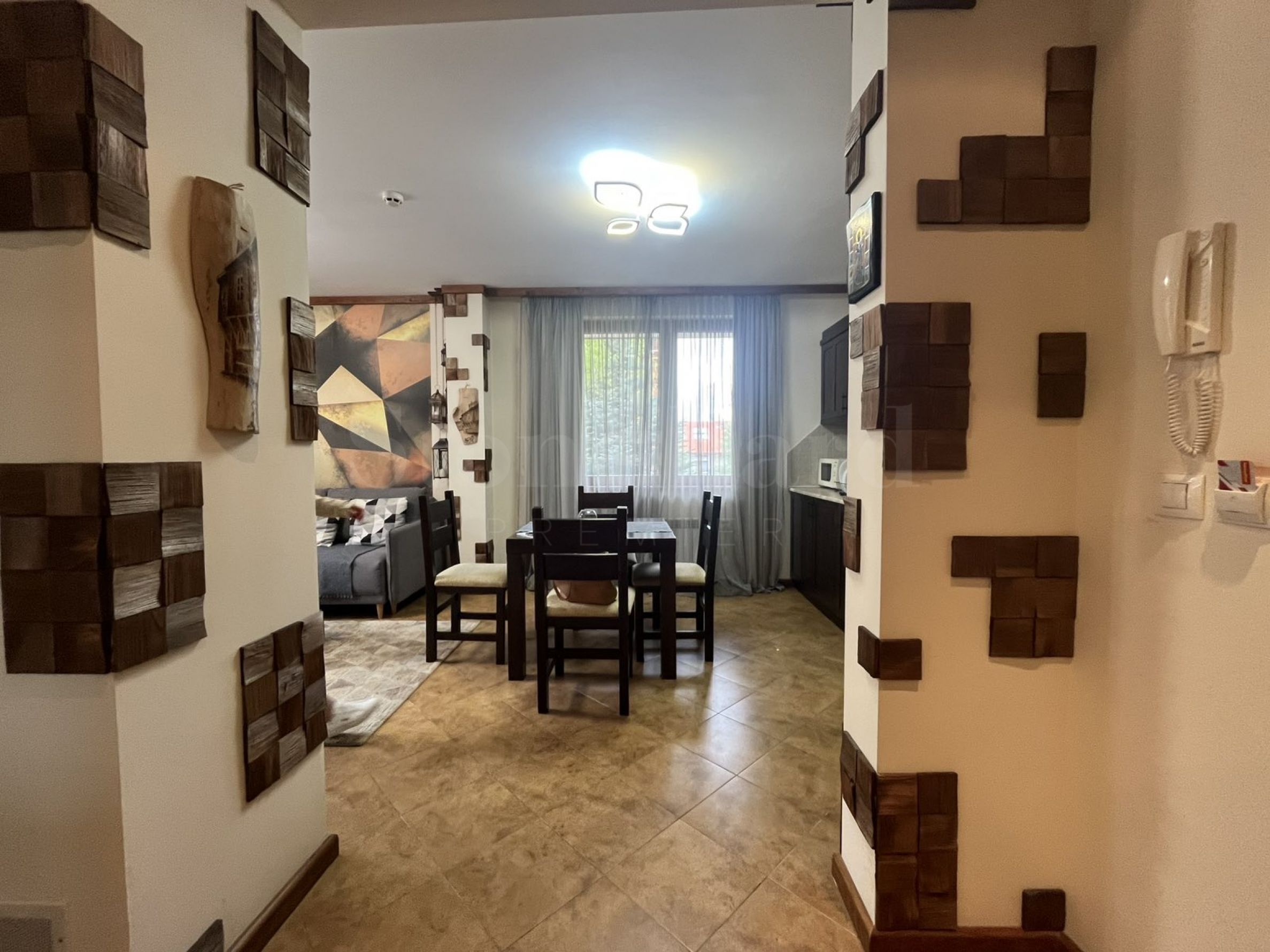 Apartament znajduje się w domu za budynkiem głównym. Każdy z nich oferuje: strefę masażu, saunę, łaźnię parową, przechowalnię sprzętu narciarskiego, duży grill z kominkiem, stół bilardowy. Wszystkie te udogodnienia są dostępne wyłącznie dla właścicieli. Właściciele będą mogli cieszyć się świeżym górskim powietrzem i widokiem na Pirin. Urokliwe wnętrze daje poczucie domowego komfortu.