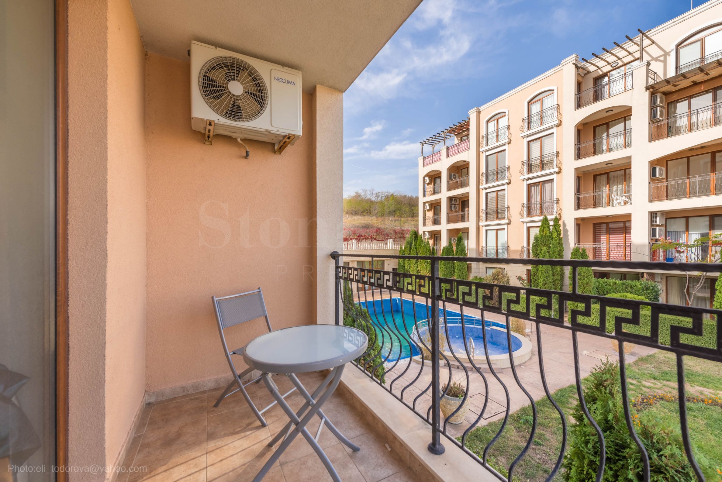 Umeblowane dwupokojowe mieszkanie z widokiem na morze na osiedlu z basenem w miejscowości Byala