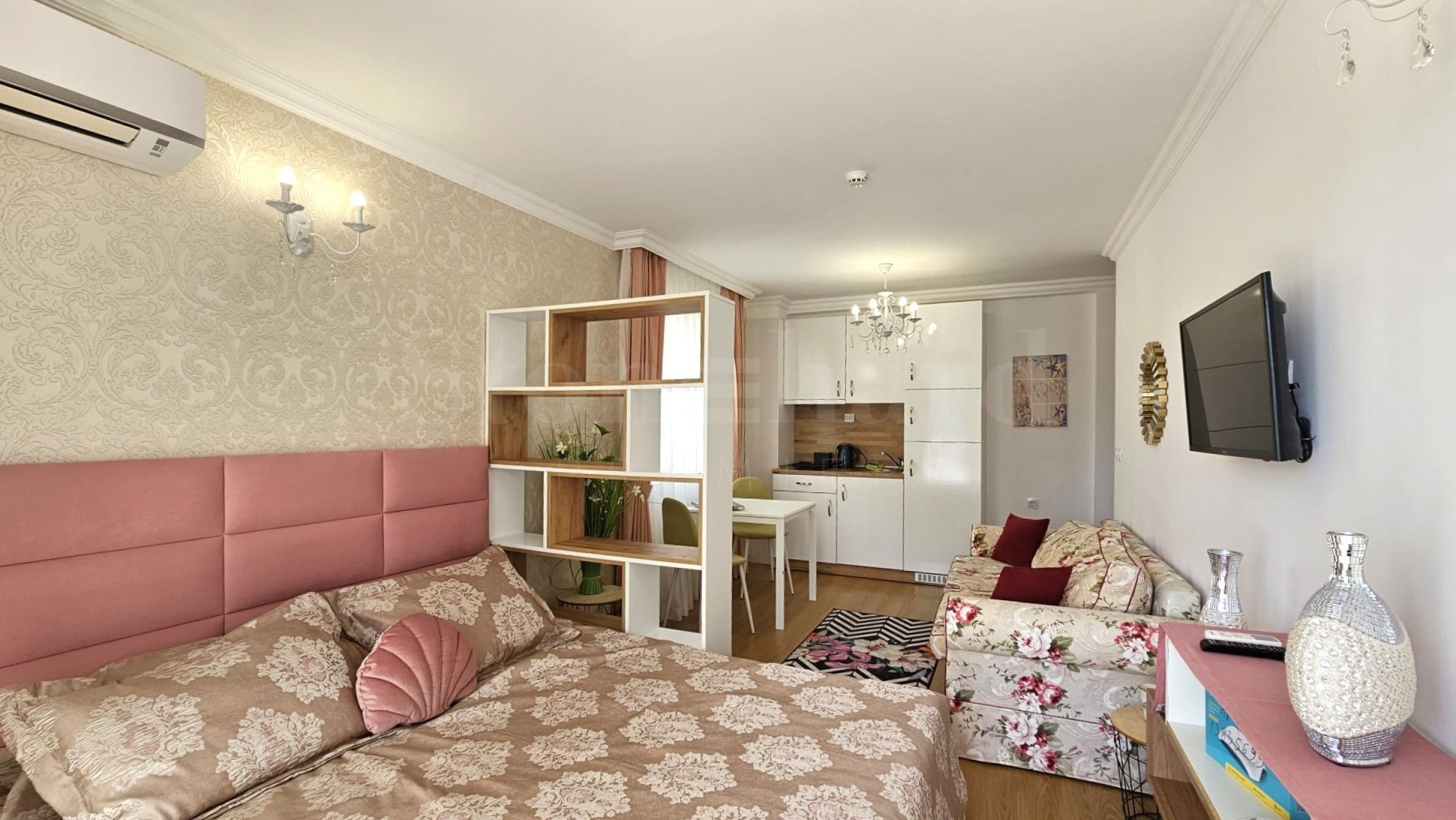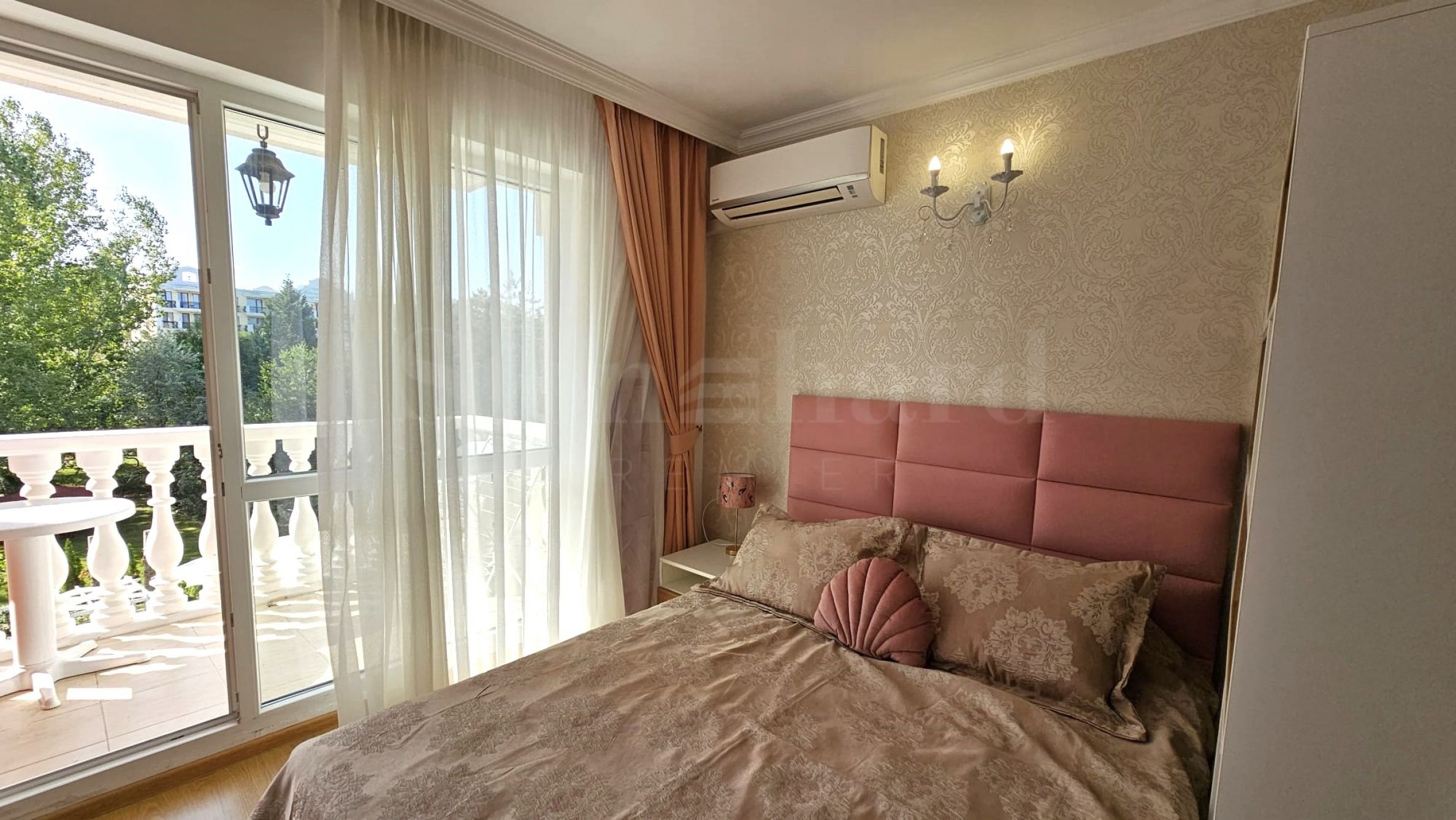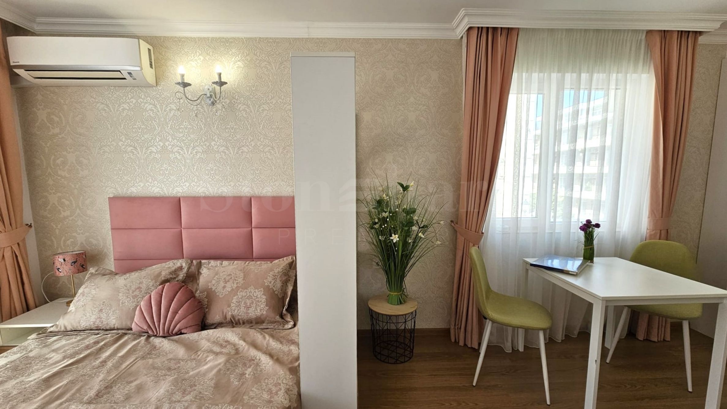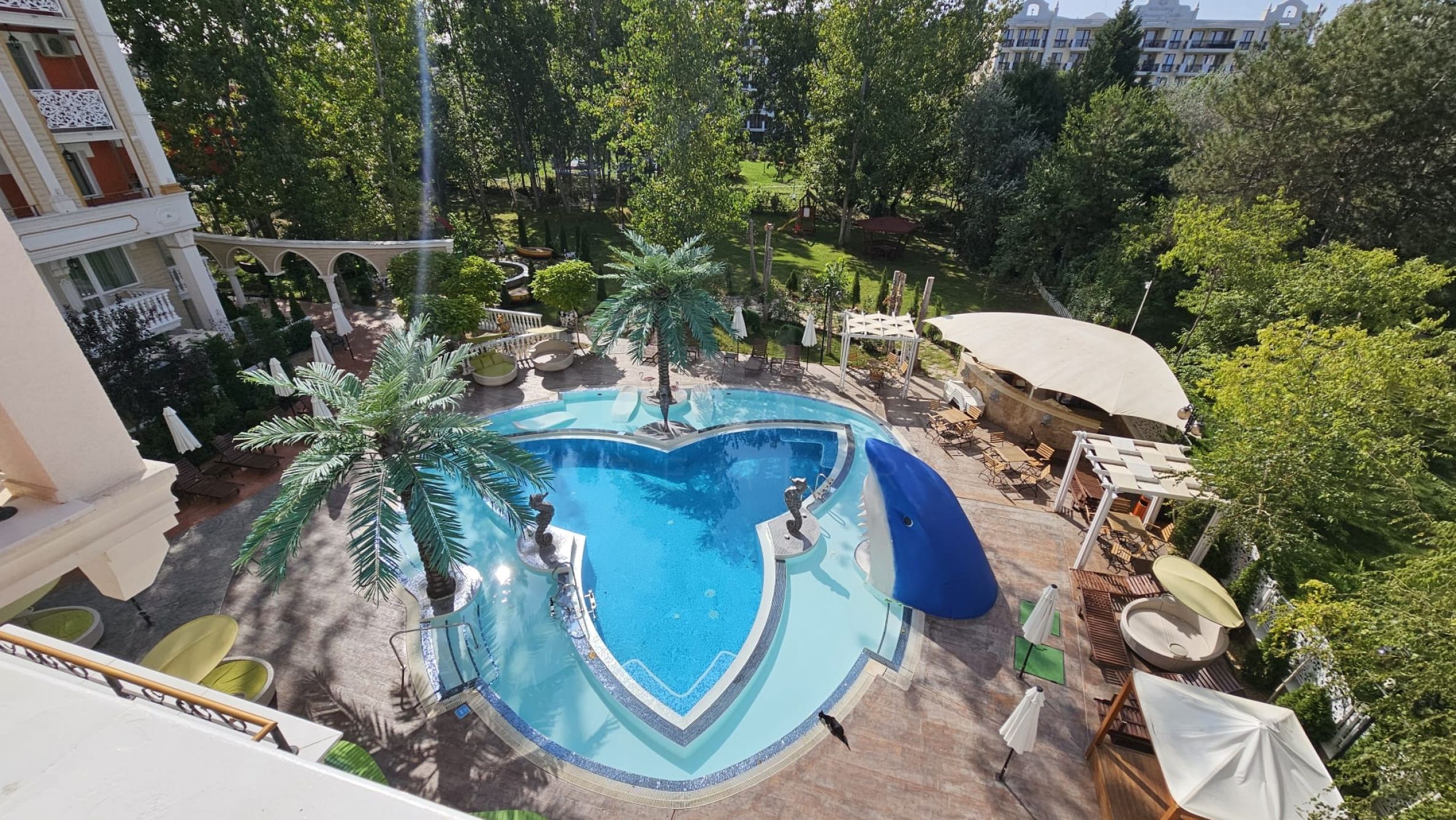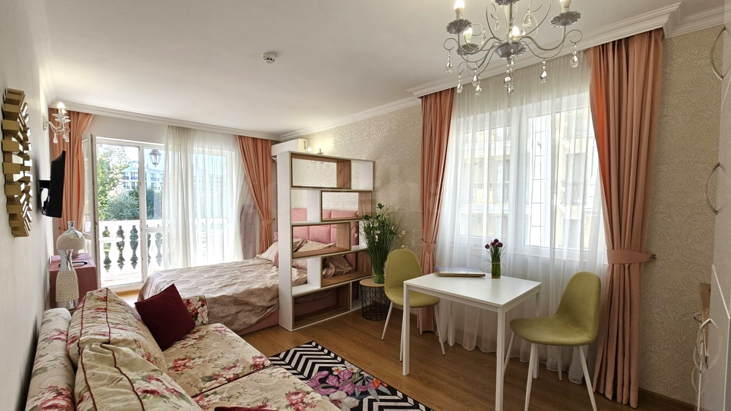 Elegancko urządzone studio z widokiem na basen w Słonecznym Brzegu