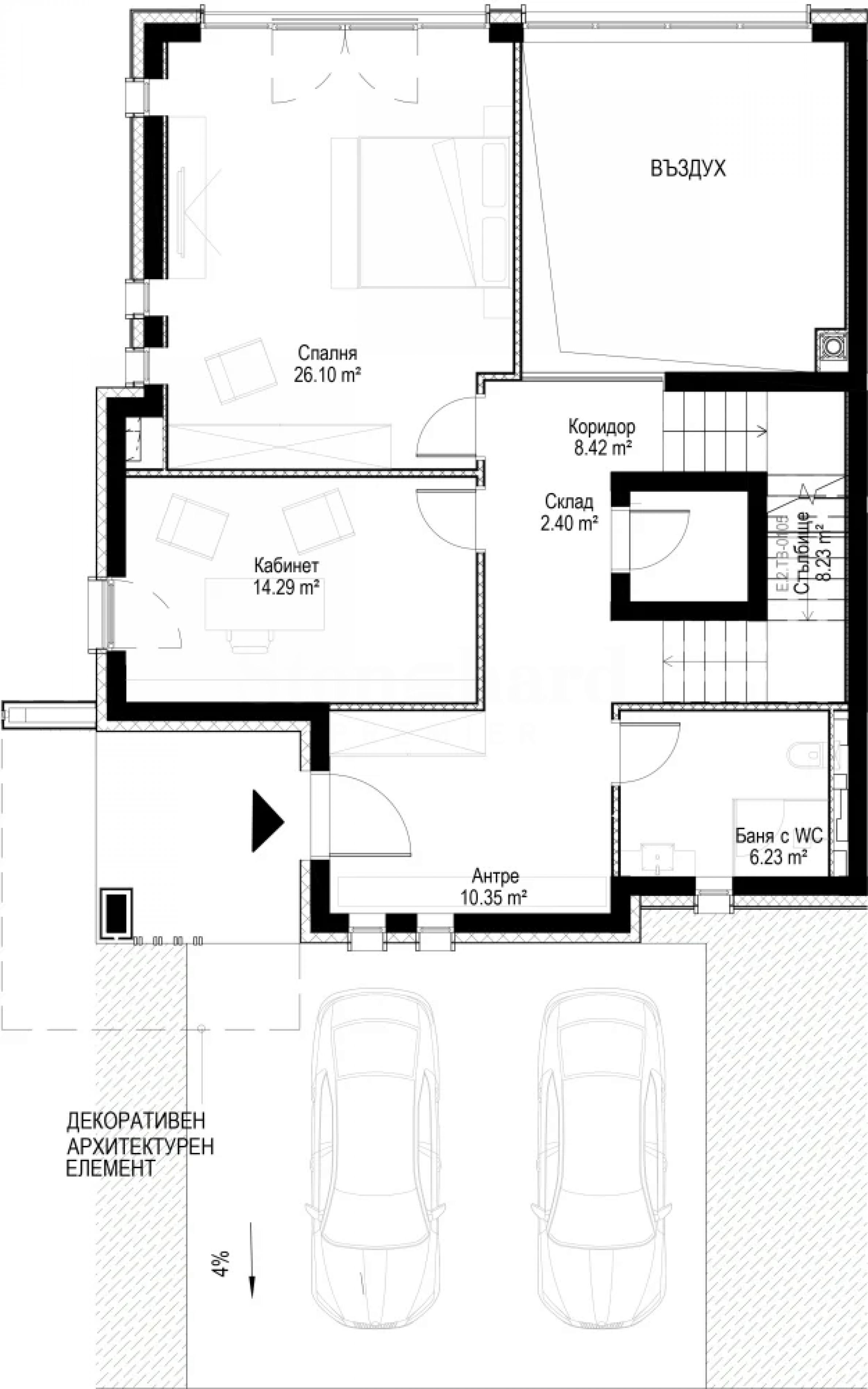 Nr E2, Typ TB - dom w zabudowie bliźniaczej z miejscem parkingowym na zewnątrz;