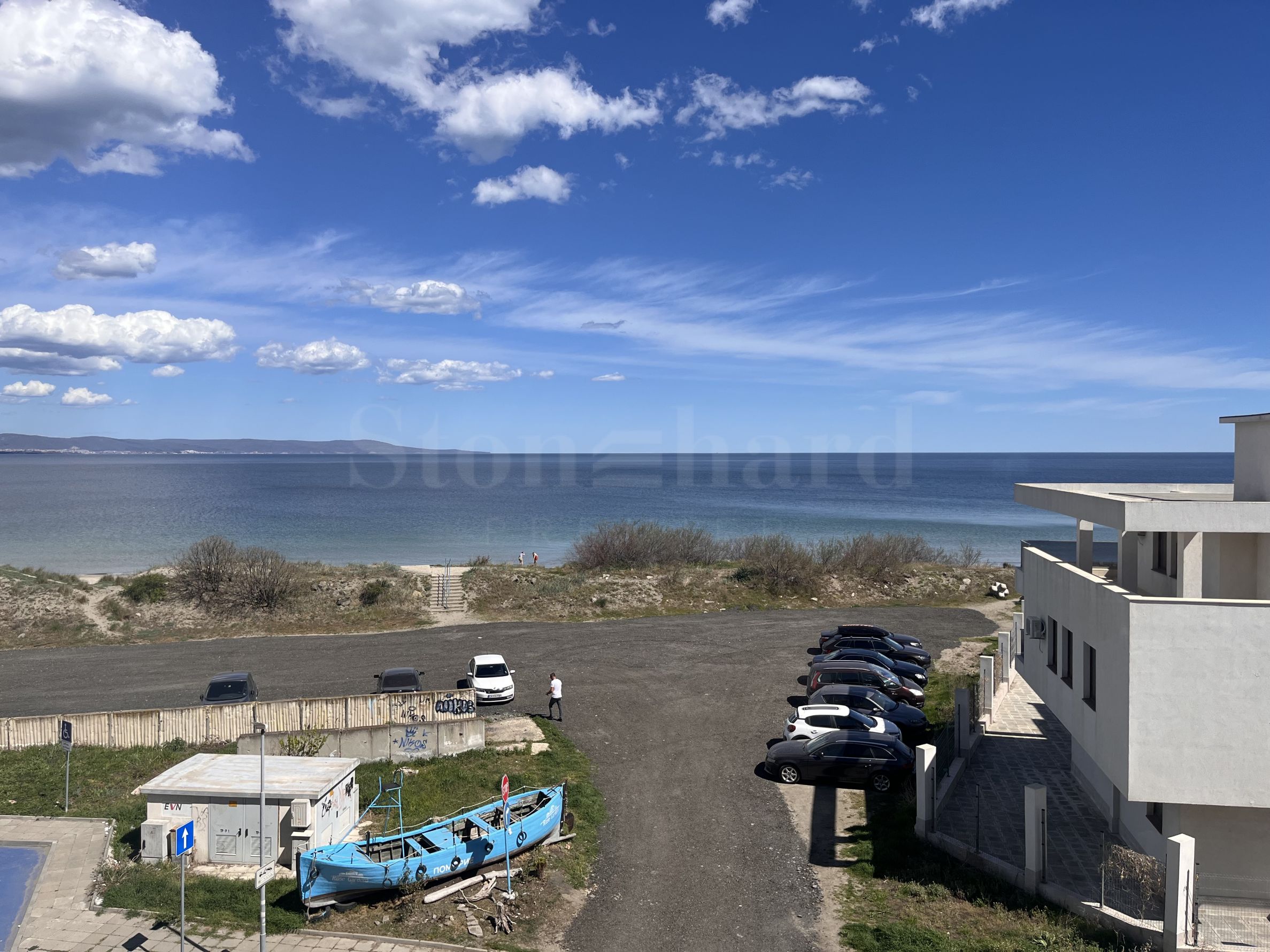 Duży apartament z frontalnym widokiem na morze i plażę w Pomorie