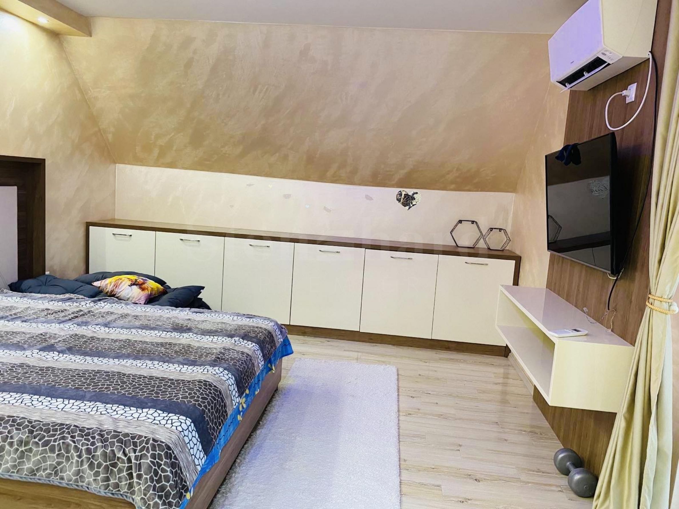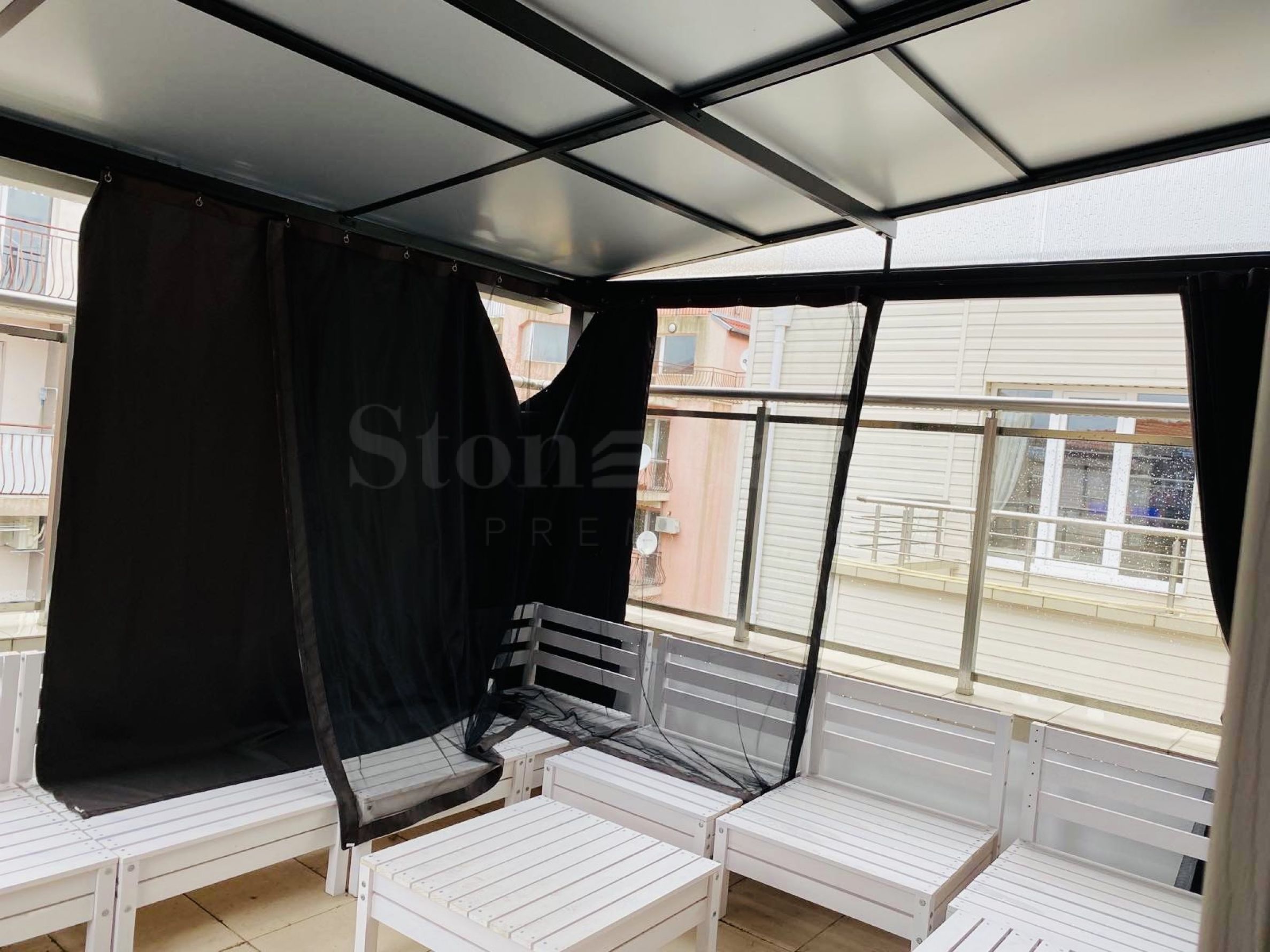 trzy tarasy, z czego jeden jest pokryty meblami ogrodowymi. Mieszkanie jest niezwykle przestronne i luksusowo wyposażone w meble znanej firmy projektowej Massivo. Tarasy są duże i można je zamienić w strefę relaksu lub grilla. Mieszkanie nadaje się zarówno do zamieszkania przez cały rok, jak i pod wynajem. Istnieje możliwość wynajęcia miejsca parkingowego.