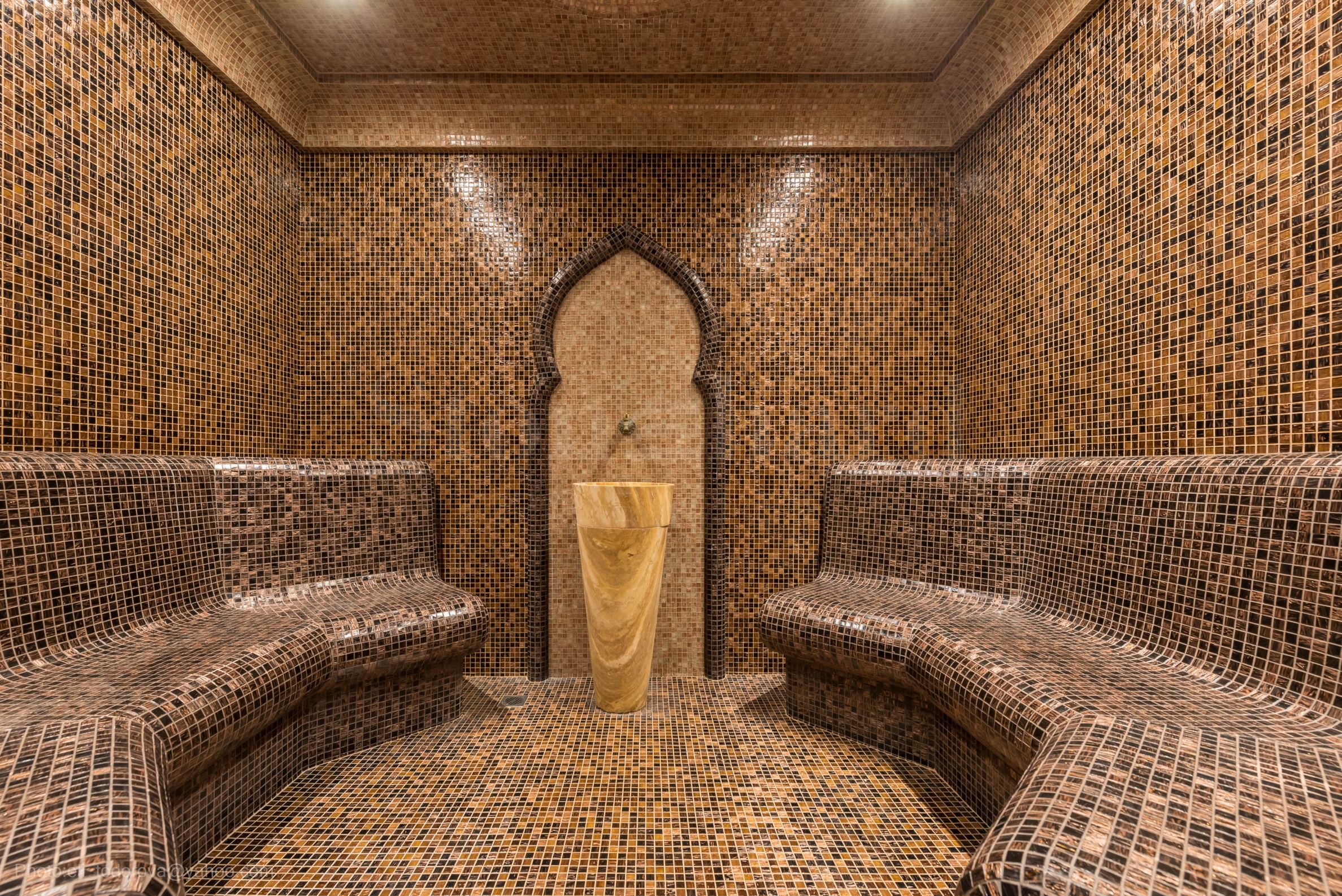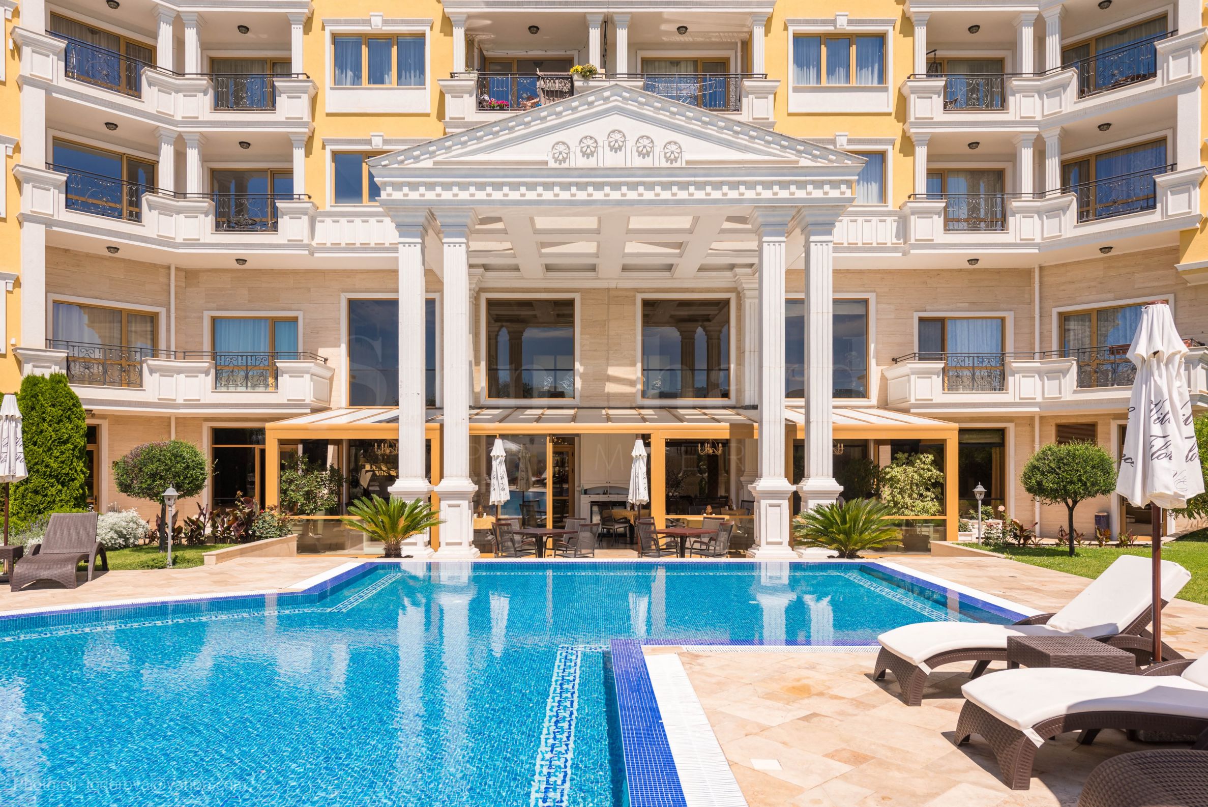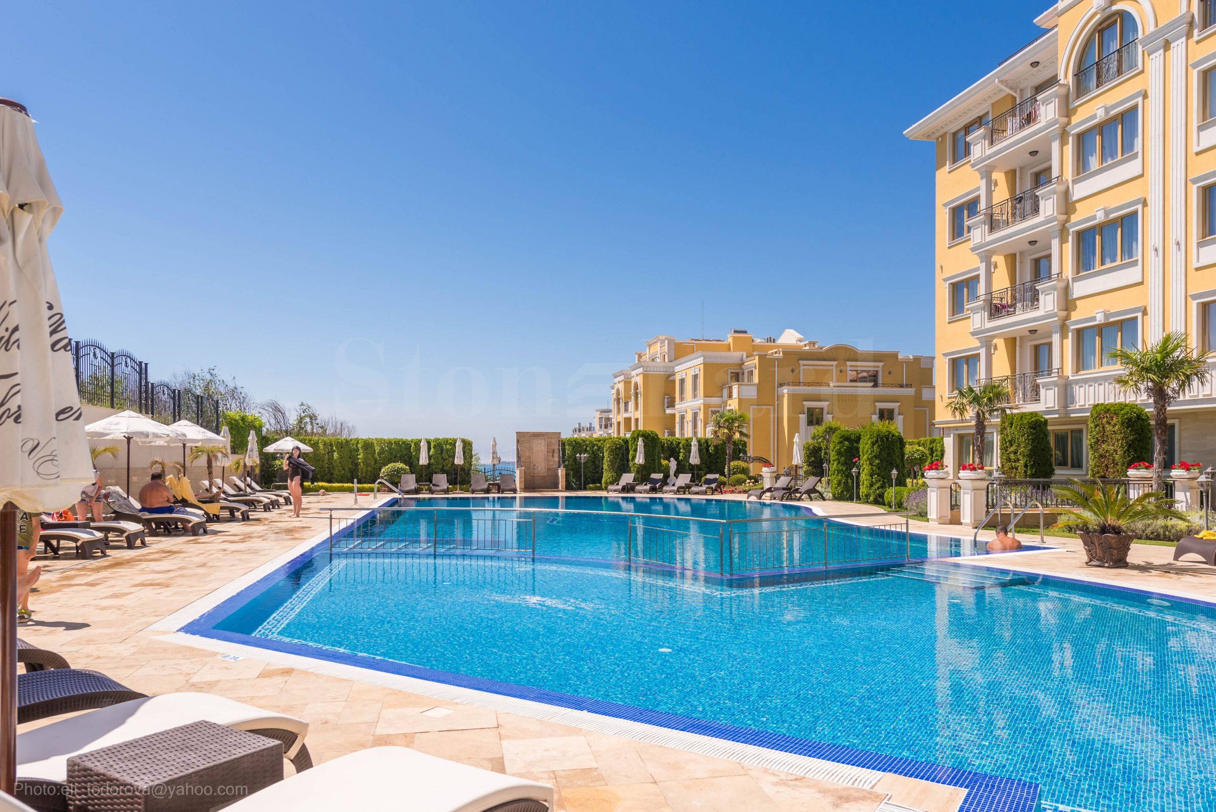 pięknie zaprojektowany dziedziniec z przyjemnym oświetleniem. Kompleks specjalizuje się w turystyce medycznej i działa przez cały rok, bez przerwy w sezonie zimowym. Oprócz zabiegów medycznych, można tu skosztować pysznego jedzenia w restauracji i bistro, oferującym dania kuchni śródziemnomorskiej i tradycyjnej bułgarskiej.