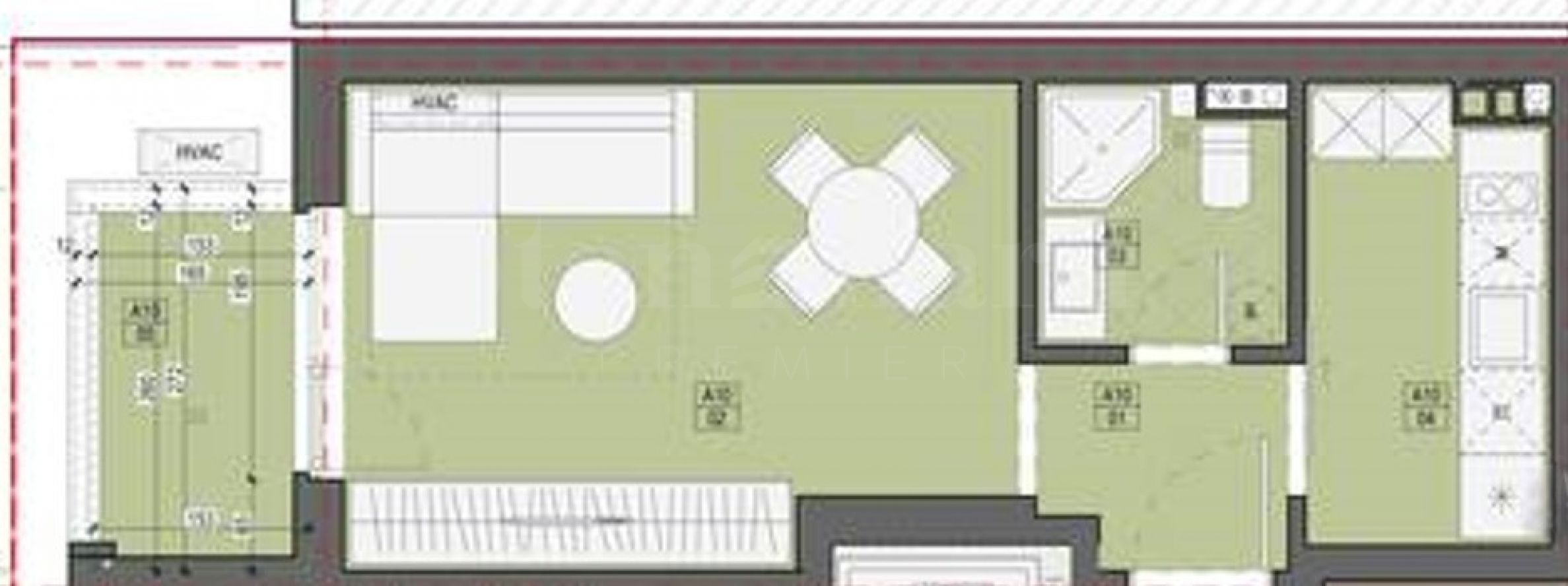 Nieruchomość o powierzchni całkowitej 47,98 m2, położona jest na 3 piętrze i składa się z przedpokoju, salonu/sypialni, oddzielnej kuchni, łazienki z toaletą oraz tarasu. Dom wydawany jest w stopniu wykończenia zgodnym z normami bułgarskimi, z kitem i wylewką, z zamontowanymi pancernymi drzwiami wejściowymi.