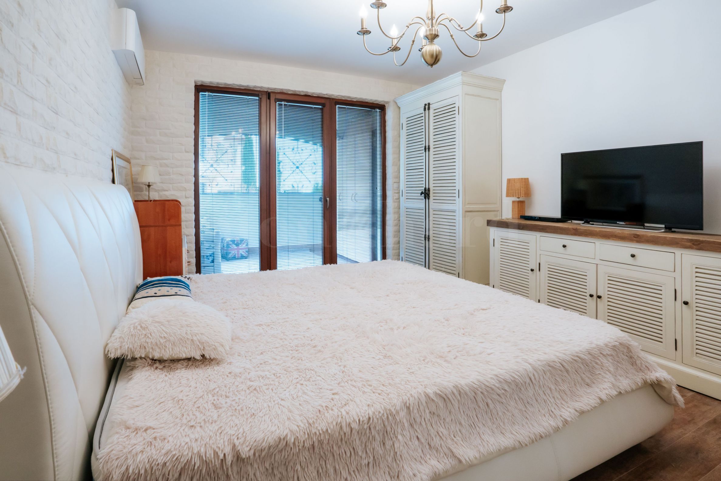 Mieszkanie jest luksusowo umeblowane według przygotowanego projektu, wysokiej jakości i funkcjonalnymi meblami. Urządzenia i sprzęt elektryczny pochodzą od renomowanych firm zachodnich. Dla komfortu właścicieli nieruchomość wykończona jest do całorocznego użytkowania, posiada ogrzewanie podłogowe elektryczne oraz wysokiej klasy klimatyzatory inwerterowe z możliwością ogrzewania i chłodzenia wszystkich pomieszczeń. Na wszystkich oknach i otwartych tarasach zamontowano zewnętrzne, elektrycznie regulowane rolety, które zapewniają bezpieczną ochronę posesji o każdej porze roku. Drzwi zewnętrzne wejściowe do mieszkania są opancerzone, z nowoczesnym systemem zamykania.