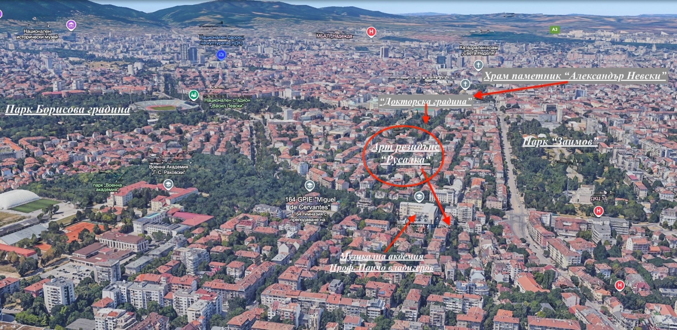 Lokalizacja : Budynek położony jest w prestiżowej dzielnicy Oborishte, kilka metrów od Parku Zaimowa, Pomnika Doktora i stacji metra Teatralna. Okolica słynie z terenów zielonych, spokojnej atmosfery oraz doskonałej infrastruktury transportowej i handlowej. Mieszkając tutaj, będziesz cieszyć się bliskością najbardziej romantycznych kawiarni i znakomitych restauracji na ulicy Oborishte, nie rezygnując przy tym z ciszy i prywatności charakterystycznej dla tej prestiżowej okolicy.