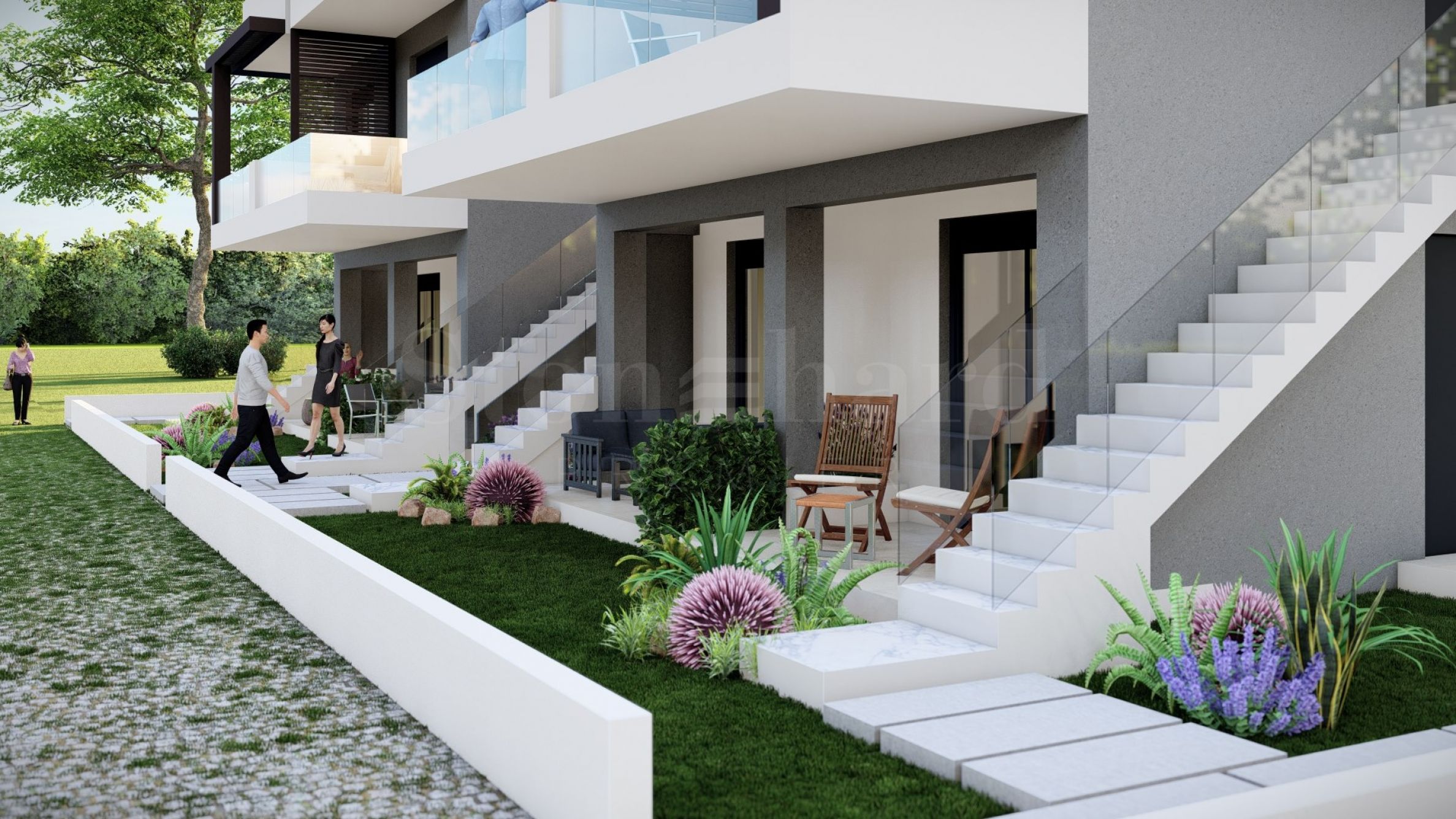 Kompleks składa się z dwóch budynków, w których znajduje się łącznie 16 apartamentów, charakteryzujących się nowoczesnym designem i funkcjonalnymi rozwiązaniami architektonicznymi. Dostępne apartamenty mają powierzchnię od 55,22 m2 do 60,44 m2. Wejście do nich odbywa się przez zewnętrzne schody, osobne dla każdego apartamentu.