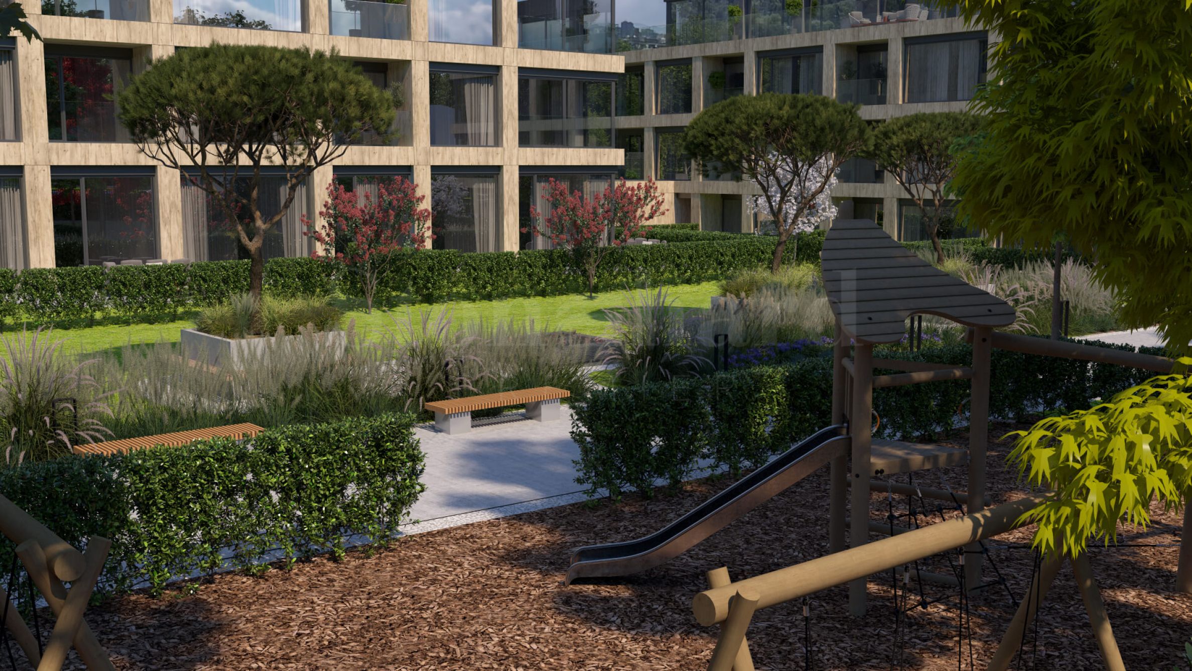 Jednopokojowe mieszkanie z ogrodem od strony południowej w elitarnym kompleksie przy parku w dzielnicy Krastova Vada