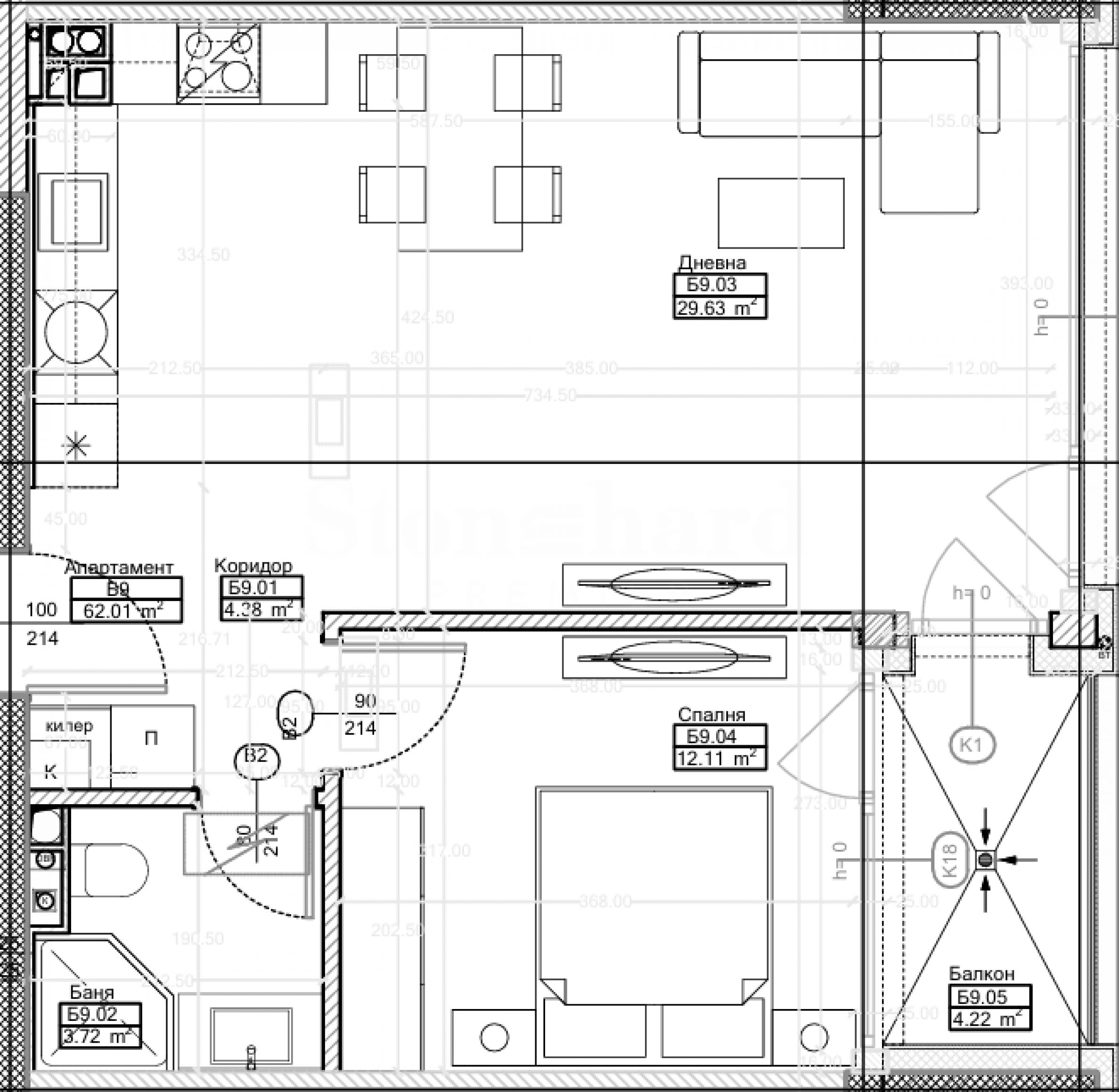 Przestronne mieszkanie z jedną sypialnią w zamkniętym kompleksie w dzielnicy Gorna Banya