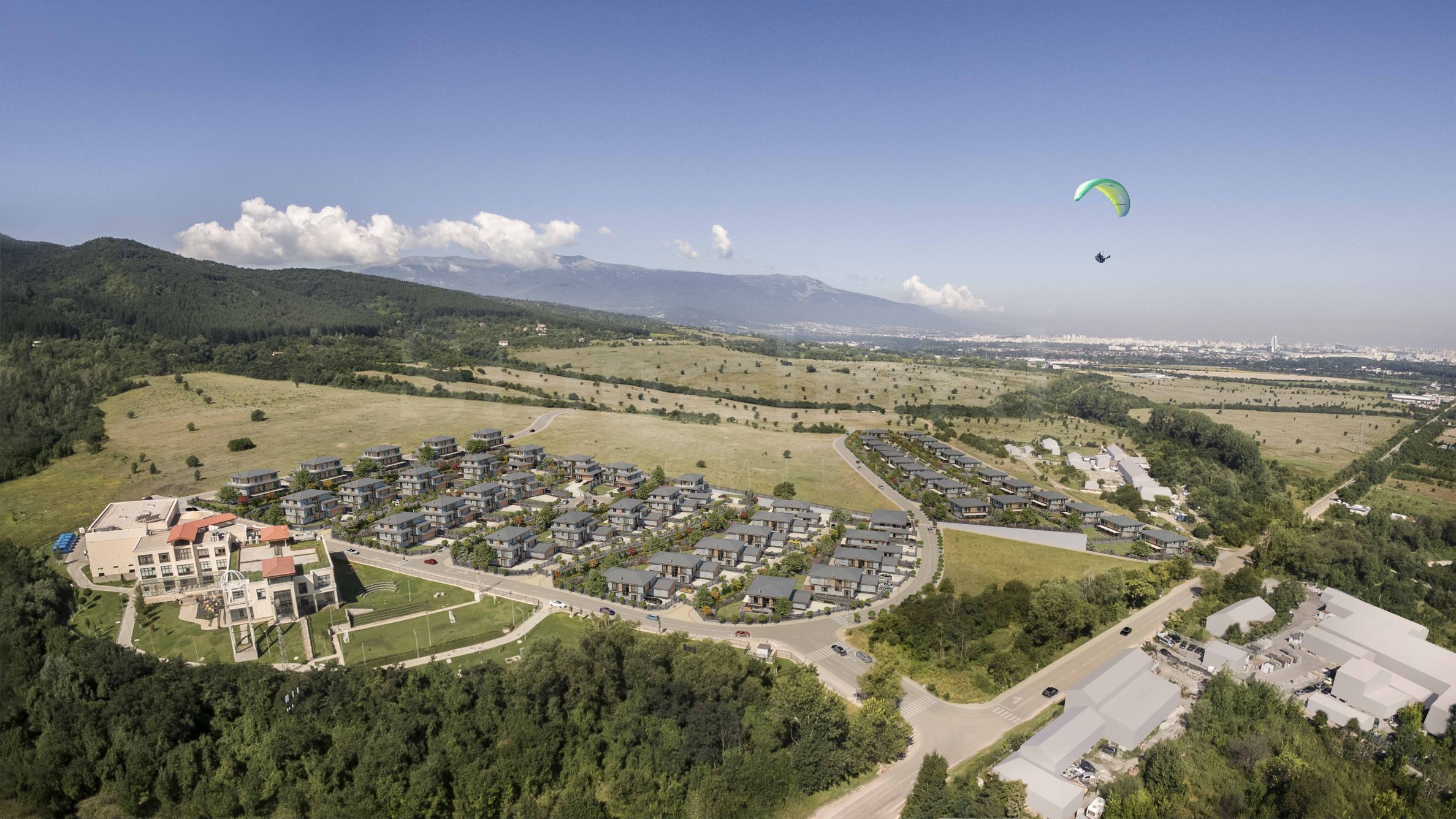 Obiekt położony jest w jednej z najczystszych dzielnic wokół Sofii. Brak intensywnego ruchu drogowego i ciężkiego przemysłu, chronione masywy leśne Gór Lozen oraz korzystne prądy powietrza zapewniają świeżość i czystość powietrza przez cały rok. Wysokość od 650 do 750 metrów n.p.m. gwarantuje więcej godzin słonecznych i długie, malownicze zachody słońca.