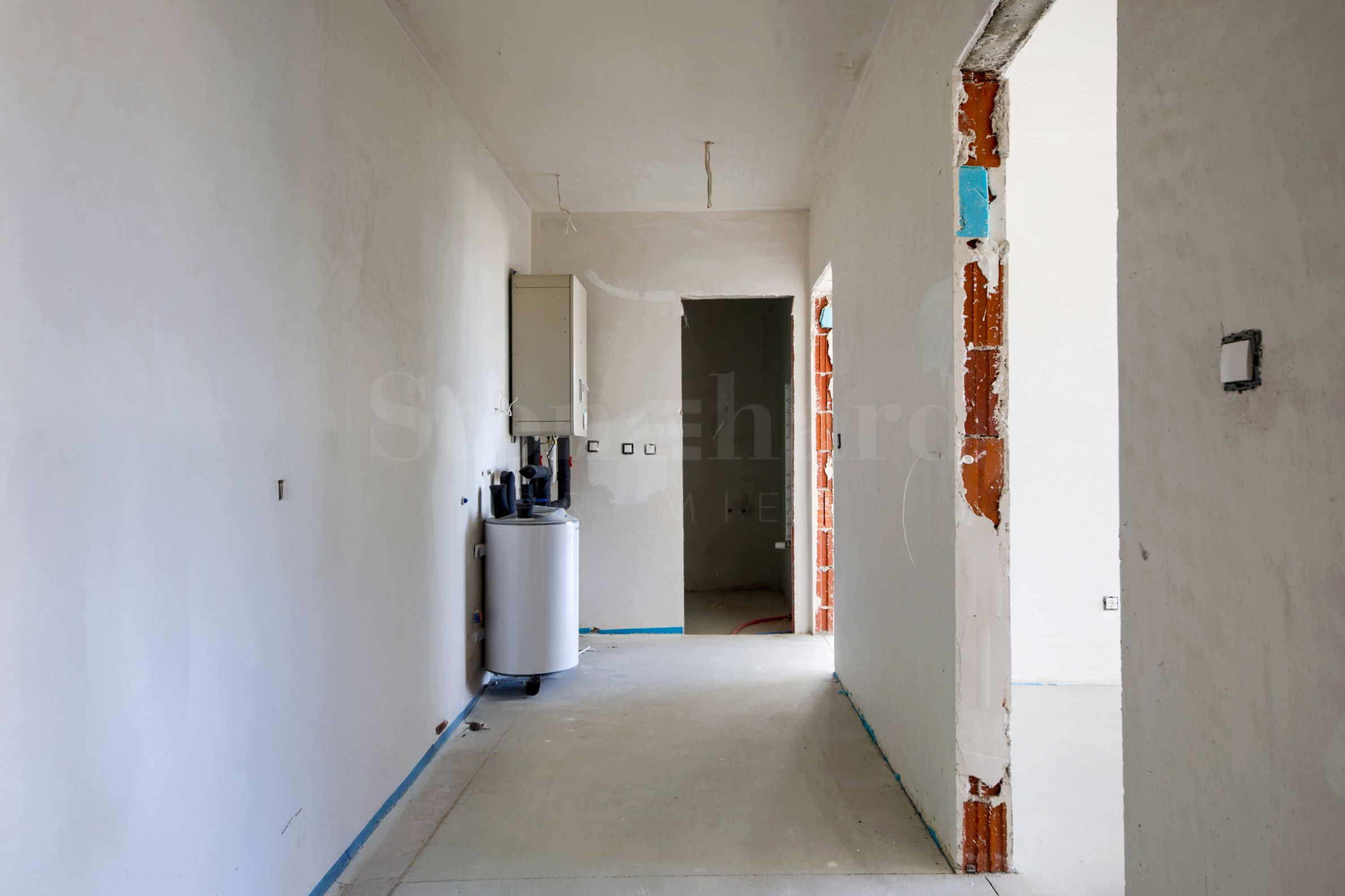 Dla mieszkania przygotowano projekt, który jest w trakcie realizacji. Obecnie wymieniono instalacje elektryczną i wodno-kanalizacyjną, zamontowano płyty gipsowo-kartonowe na ścianach i sufitach zgodnie z projektem oraz wykonano gładzie gipsowe na ścianach i sufitach.