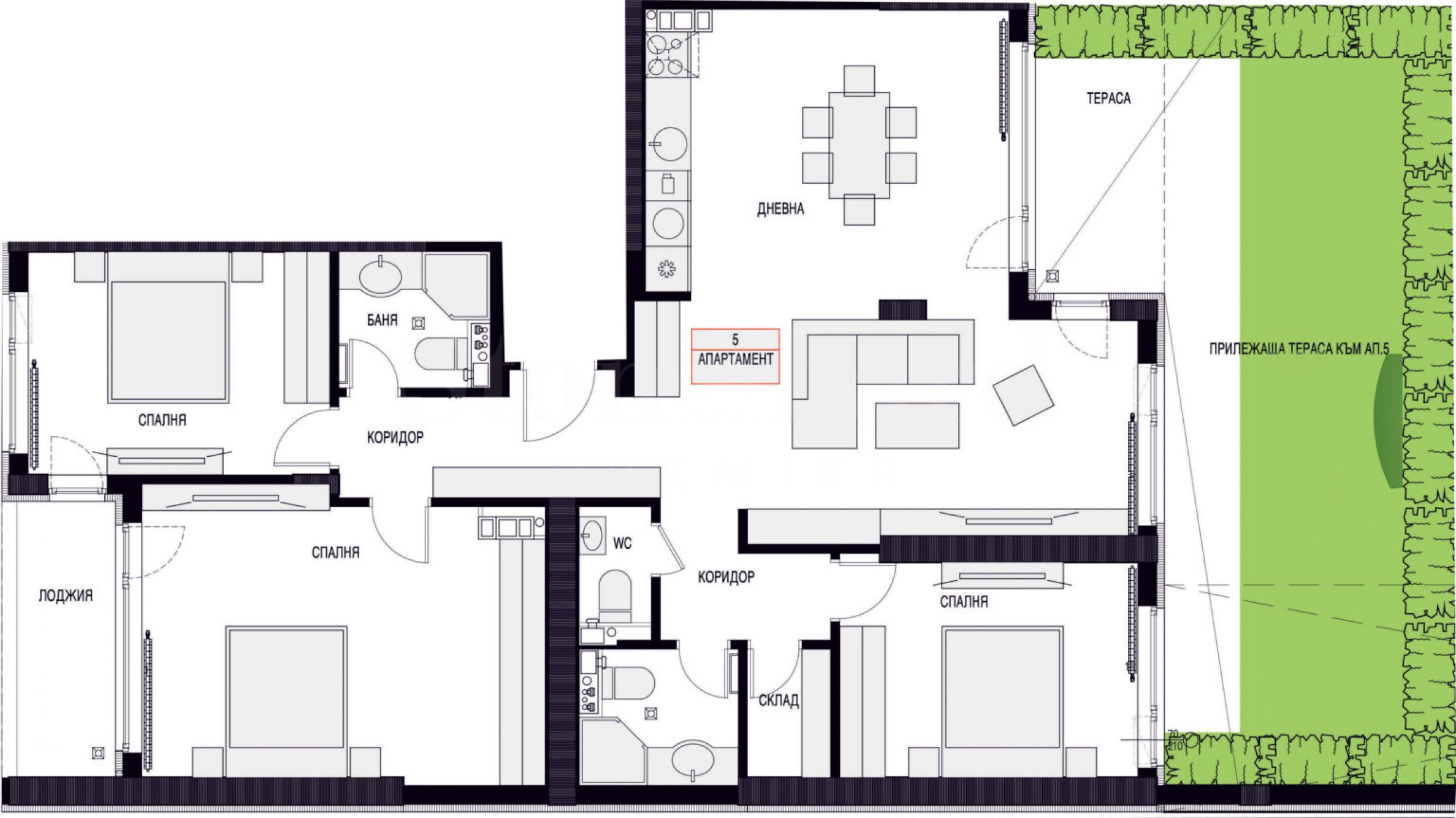 Mieszkanie czteropokojowe z ogródkiem, w budynku naprzeciwko Aktu 16 w Lyulinie 2