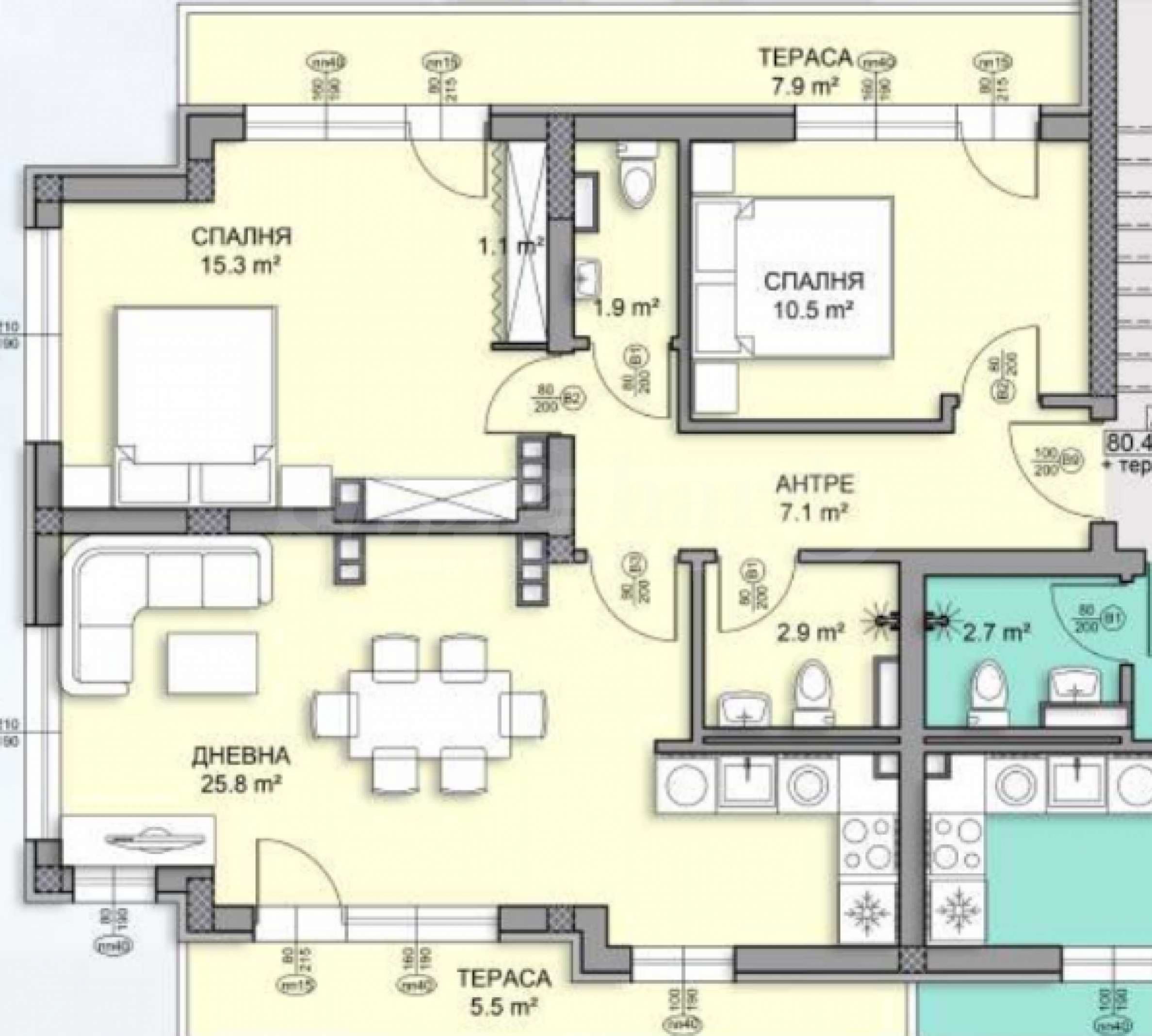 Designerski apartament z dwiema sypialniami w nowym kompleksie w Malinova Dolina