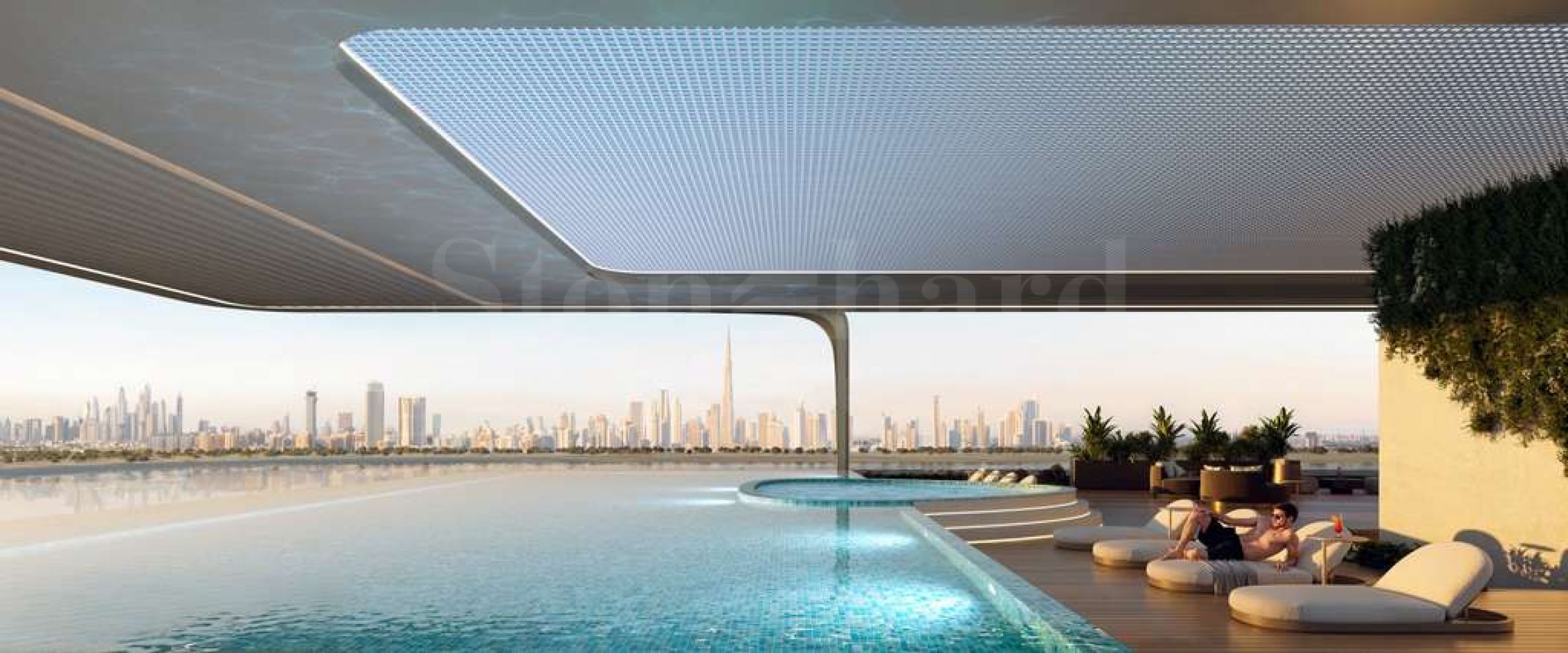 Apartamenty z jedną sypialnią zostały zaprojektowane z myślą o maksymalnym doświetleniu i otwartości, z 3-metrowymi oknami od podłogi do sufitu, europejskimi kamiennymi podłogami, kwarcowymi blatami i sprzętem AGD marki Siemens. Apartamenty z dwiema sypialniami łączą funkcjonalność z elegancją dzięki przestronnym salonom i jadalniom, spokojnym sypialniom głównym oraz kuchniom dostosowanym do współczesnego stylu życia. Na szczycie znajdują się trzypokojowe apartamenty typu penthouse, które na nowo definiują luksus – oferując duże prywatne tarasy, łazienki inspirowane spa i jacuzzi z widokiem na kultową panoramę Dubaju.