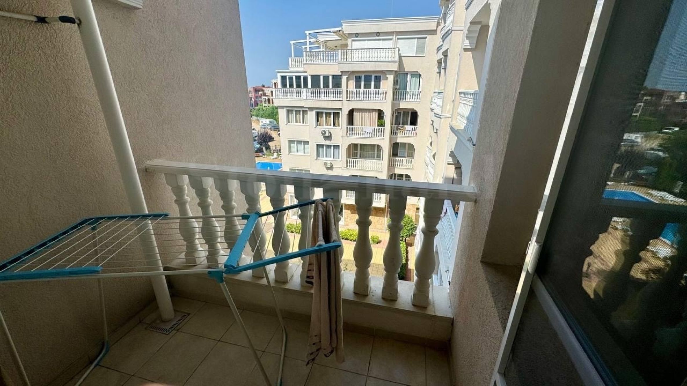 Nieruchomość o powierzchni 71,63 mkw. położona jest na 5 piętrze z widokiem na wewnętrzny dziedziniec kompleksu, kurort Słoneczny Brzeg i Nesebyr.