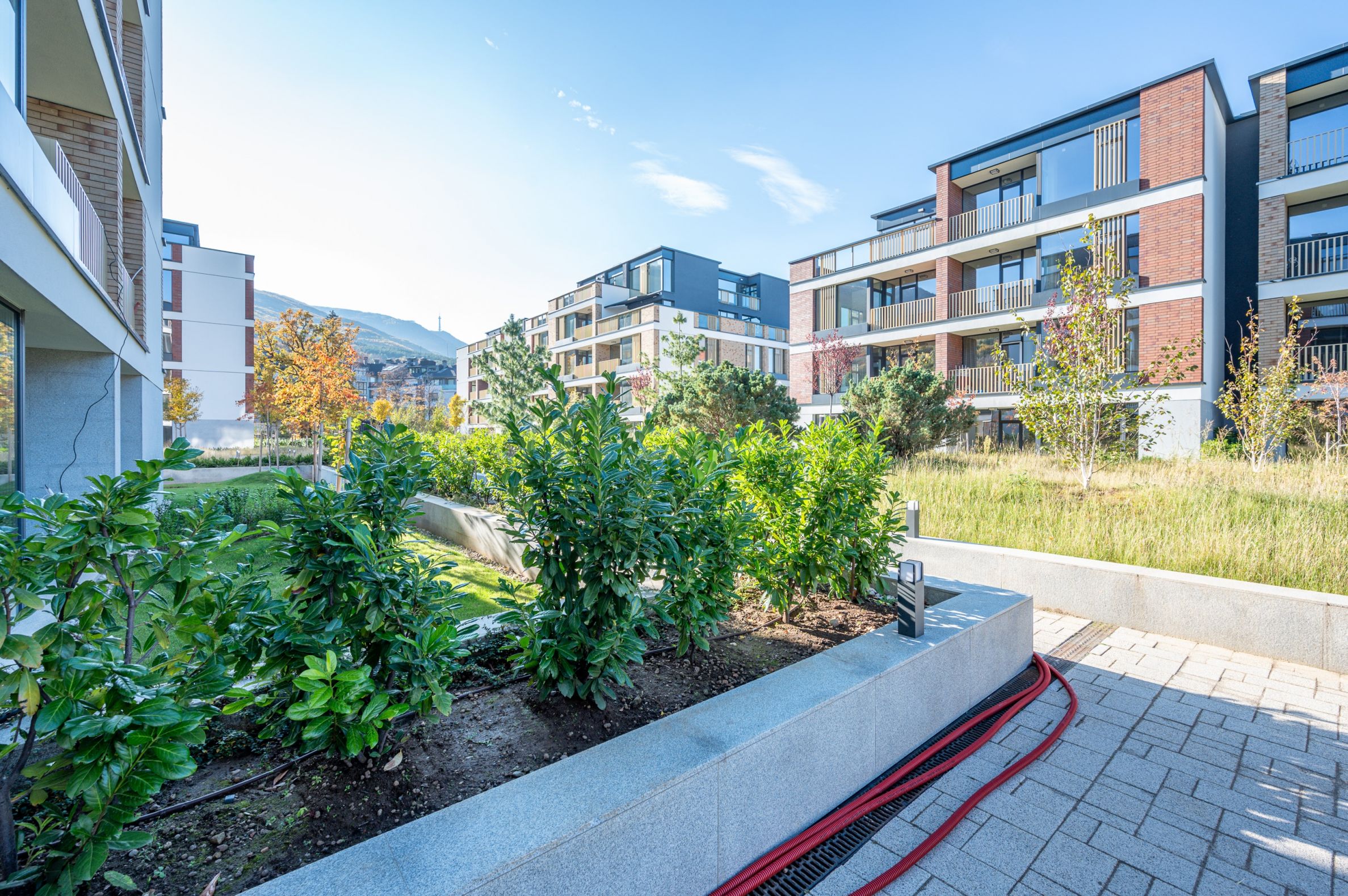 Kompleks jest w pełni zgazowany i oferuje luksusowe przestrzenie wspólne, kontrolowany dostęp, ochronę, bogato zagospodarowane alejki i zadbane dziedzińce, co gwarantuje komfort, bezpieczeństwo i spokój.