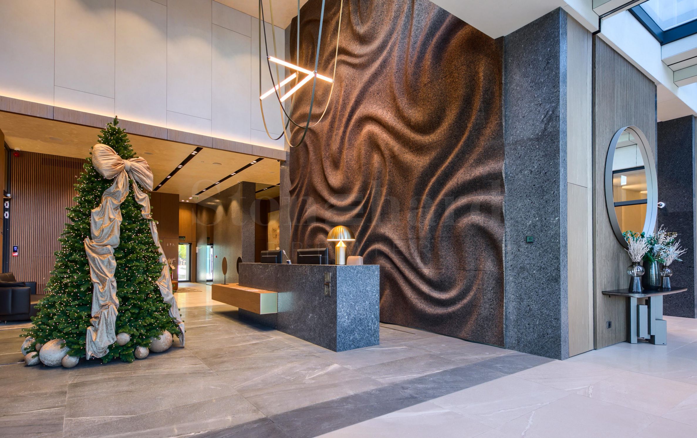 W lobby powita Cię elegancka recepcja z designerskimi wnętrzami, a mieszkańcy mogą korzystać z wygody całodobowego monitoringu i kontrolowanego dostępu.
